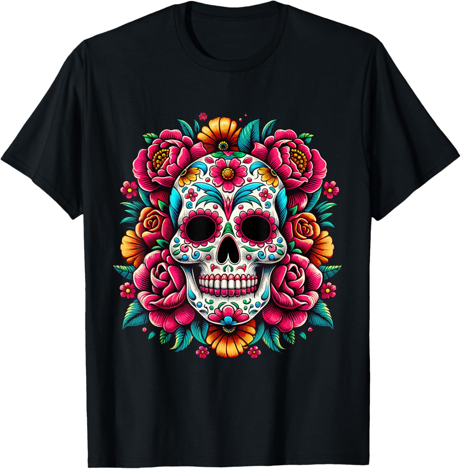 Sure to be a hit on Halloween or day of the dead celebrate in style with this cute floral sugar skull top for women. Makes a great Dia De Muertos party top. Share your love of day of the dead with this floral sugar skull Dia De Muertos.