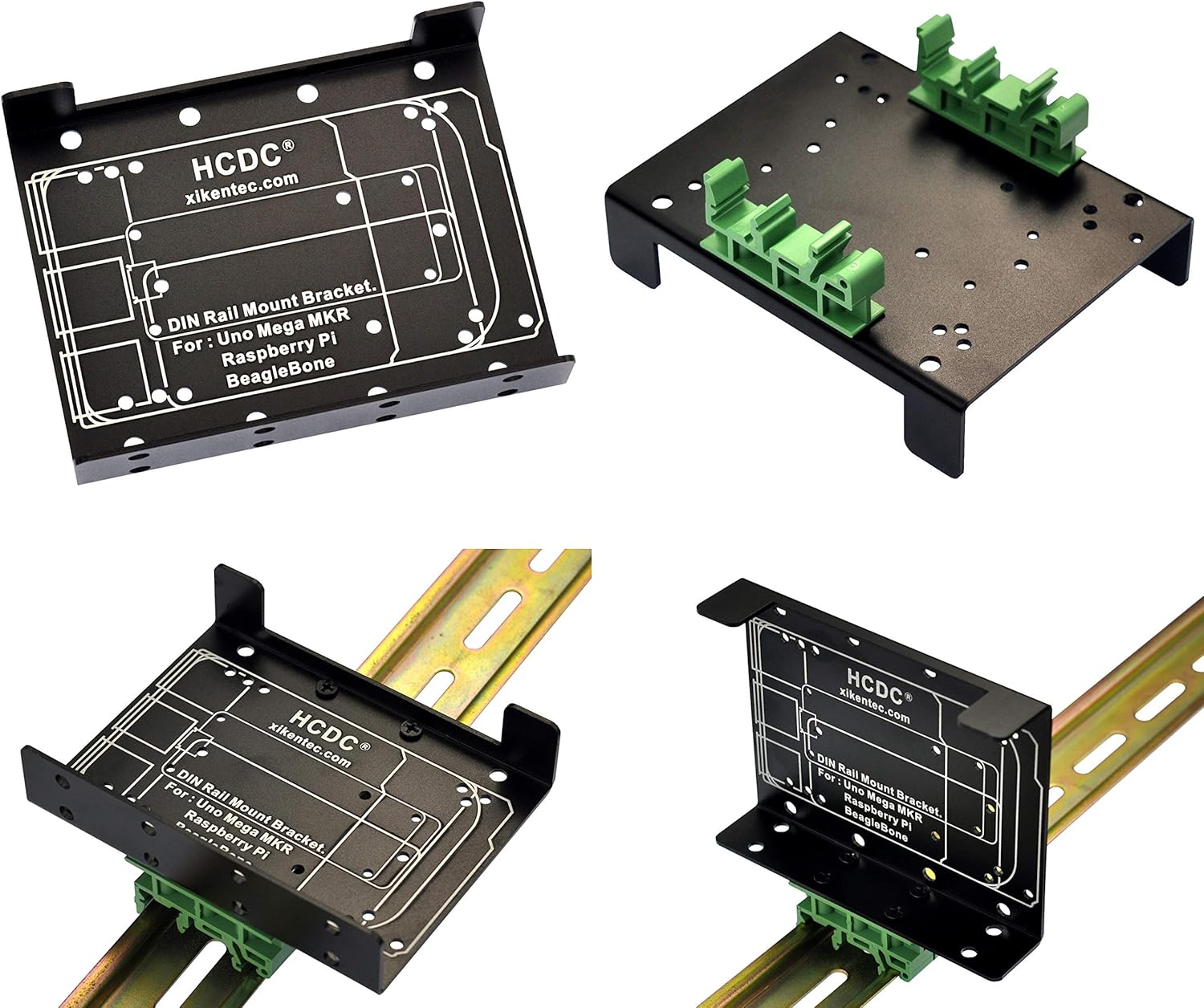 This product can easily mount Raspberry Pi / Arduino / BeagleBone to DIN rail, expand their range of applications to industrial control.Supports Raspberry Pi 1 Model A+ / Pi 1 Model B+ / Pi 2 Model B / Pi 3 Model B / Pi 3 Model B+ / Pi 4 Module B / Pi Zero / Pi Zero W, Arduino Uno R2 / Uno R3 / Mega 2560 R2 / Mega 2560 R3 / MKR Series etc, and BeagleBone / BeagleBone Black / BeagleBone AI / BeagleBone Black Wireless / BeagleBone Green / BeagleBone Green Wireless or SanCloud BeagleBone Enhanced.High quality DIN rail feed and mounting very stable, can support width 35mm / 32mm / 15mm DIN rail. Support horizontal and side installation. The position of the DIN rail feet can be adjusted according to the situation. And the carrier feet can be taken apart for wall-mount use.Thickness 1.5mm/0.06″ aluminum bracket sheet, the weight is very light and very strong.Package included: 1x Aluminum bracket, 1 pair DIN rail adapter feed and mount screws, 6x M2.5x10mm standoffs, 12x M2.5×6 pan head screws, 4x M2x12mm standoffs and 8x M2x6mm screws(for Arduino MKR). NOTE: the item not include Arduino Mega and iron DIN rail.