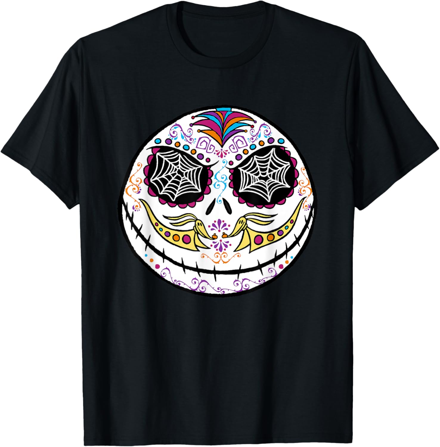Jack Skellington updates his Halloween Town look with one that’s perfect for celebrating Día de Los Muertos. The Nightmare Before Christmas fans will delight with fright over this vibrant Jack Skellington t-shirt, featuring the Pumpkin King illustrated in the style of a traditional sugar skull. Available in a t-shirt, premium t-shirt, tank top, long sleeve tee, and sweatshirt.