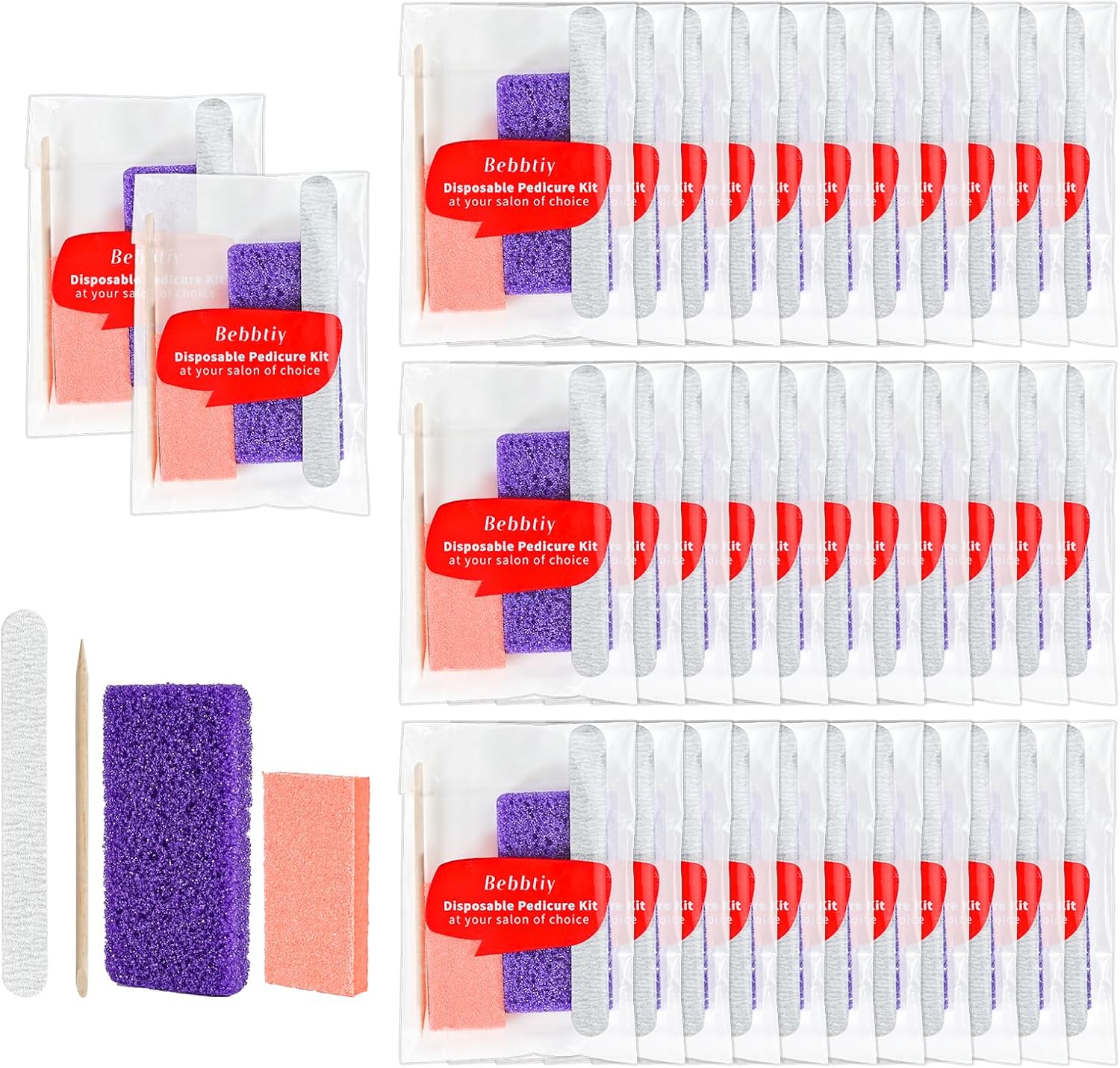 Disposable Pedicure Kit: including pumice pad, nail file 80/100 grit and buffer 80/100 grit, wood stick,individually wrapped.