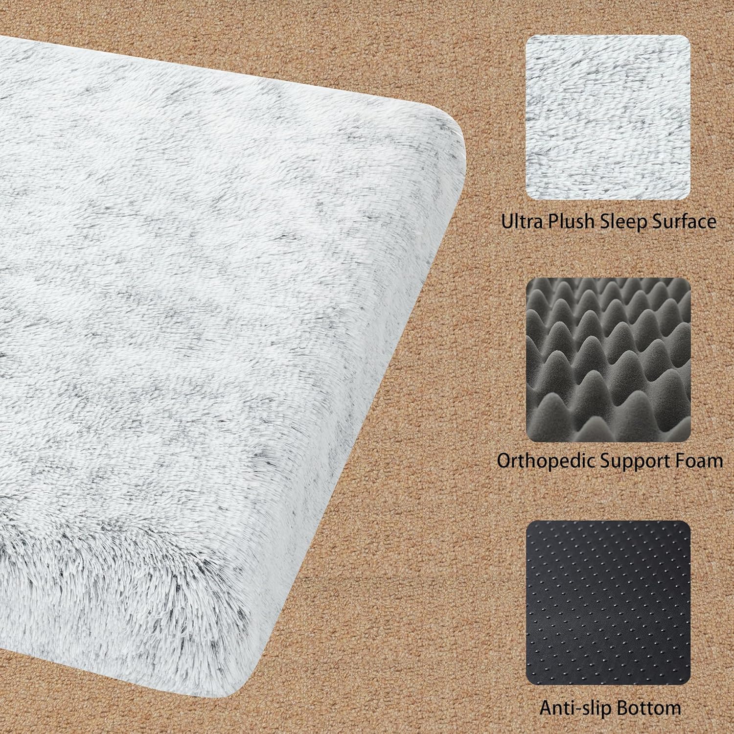 High Quality Faux Fur Cover: The sleeping area of the YIZHUOPET dog bed is made of 3-layer fabric. The surface of the large dog bed adopt soft luxury faux fur material,which is close to Dog’s fur, super cozy and warm. The comfy dog crate pad can create a healthy sleeping environment and help them calm down. The middle PE waterproof layer prevents liquid from penetrating, which will protect the foam from accidents and fluids greatly. The inner knit fabric lining is durable enough for long time use.