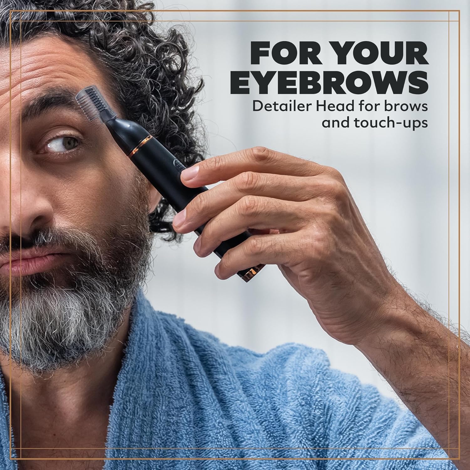 Style Detailer Precision Trimmer: One head cleans up pesky nose and ear hairs. The other helps keep the details tidy on your eyebrows, sideburns, cheeks, and neckline.