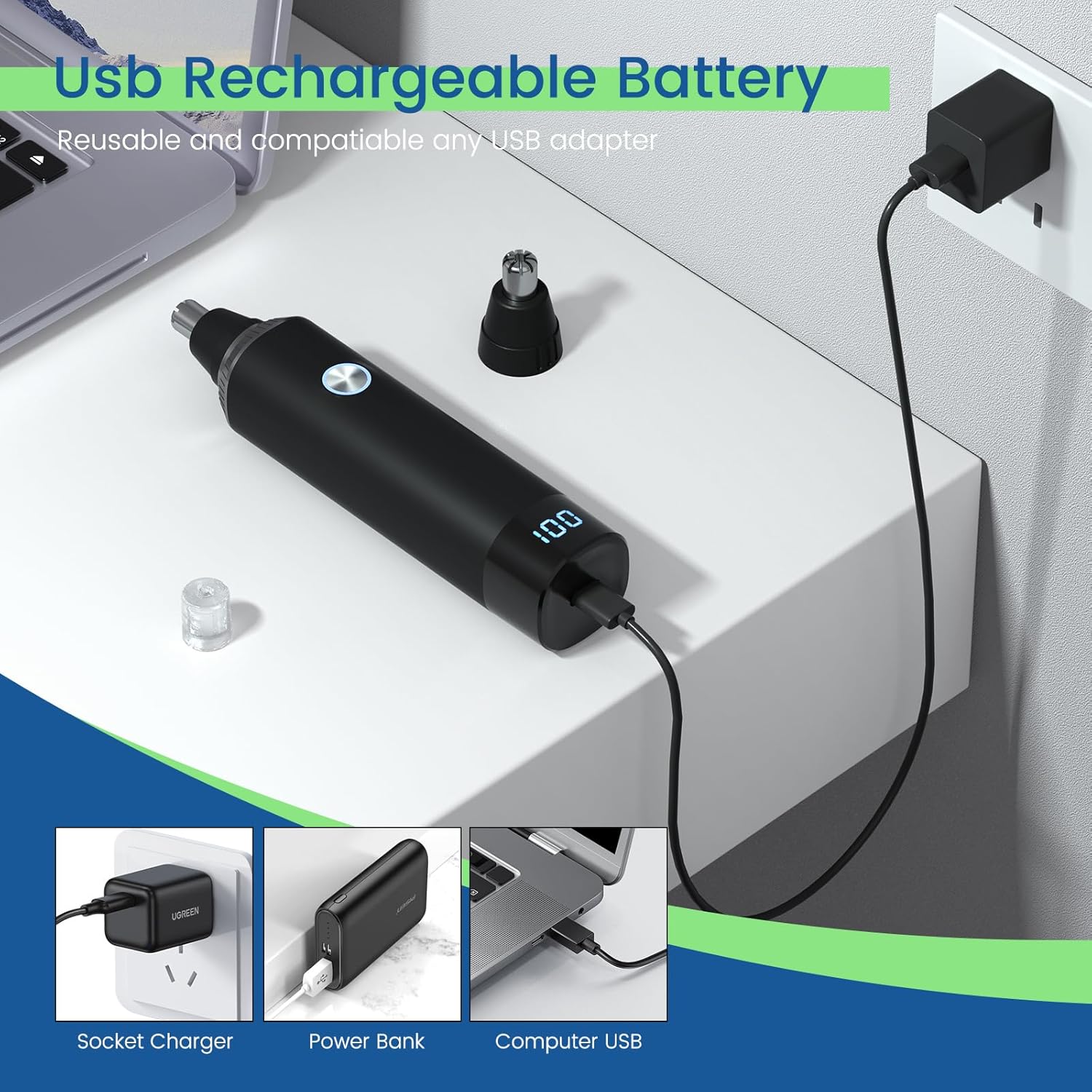 Newly Upgraded Digital LED Display: This nose hair trimmer is equipped with a digital LED display, making it easy to monitor the battery level and avoid running out of power mid-use. Plus, its professional noise-reduction design keeps sound levels quieter than the buzz of a bee, ensuring a more peaceful grooming experience that won’t disturb your family’s sleep.