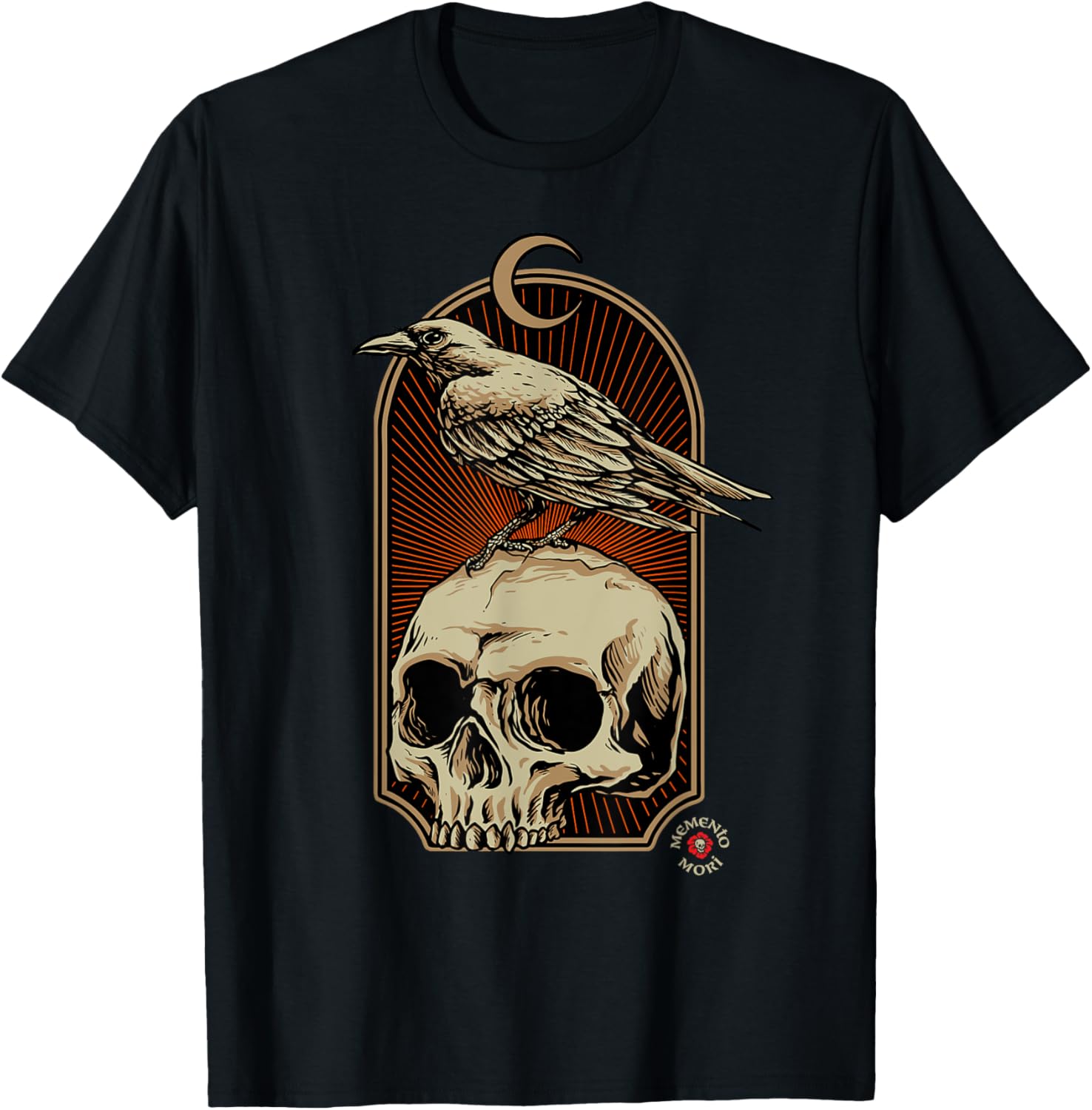 Edgar Allan Poe Nevermore Graphic Tee by Memento Mori | Memento mori is a Latin phrase meaning ‘remember you must die’. While it may be a sobering reminder of the temporary nature of life, it does not need to be a morbid reflection on death. In his Meditations, Marcus Aurelius (121-180 CE) wrote a collection of personal thoughts and reflections on life, death, and what it means to live well. He sums up one of the primary tenets of Stoic Philosophy in a sentence: “Death overshadows you. While you’re alive and able – be good.”