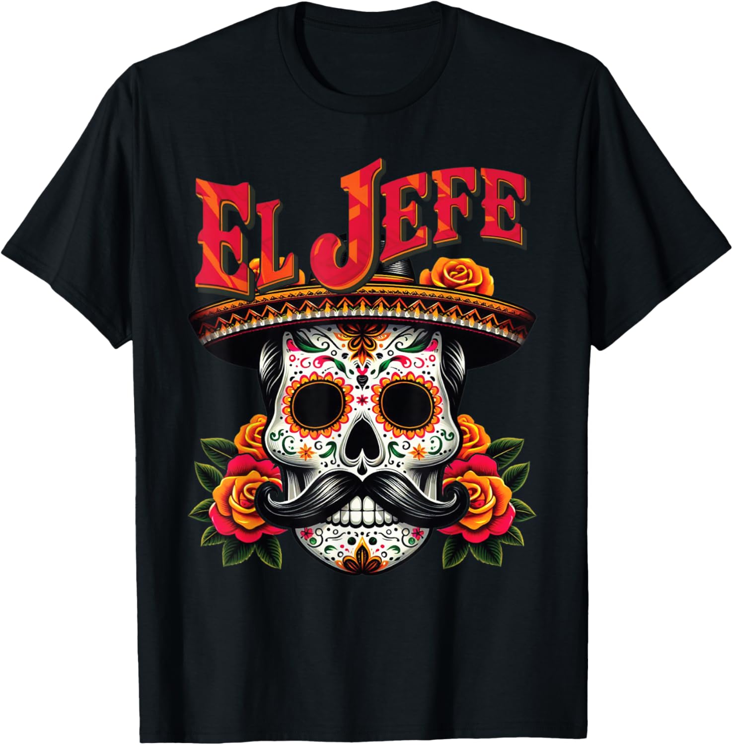 Calavera de Azúcar El jefe for Dia De Los Muertos Mexican Boss. Sugar Skull For Mexican man Halloween, for Cinco De Mayo and Mexican party Calavera.