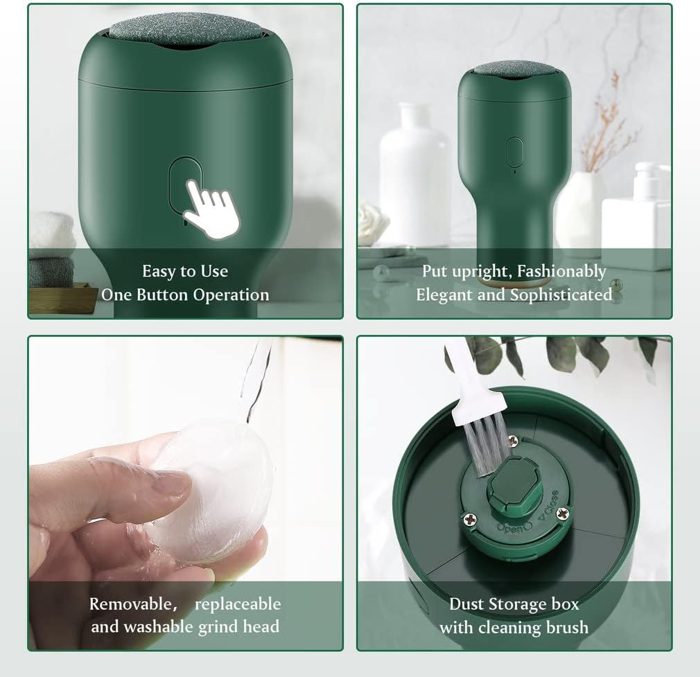 【High Quality】 This foot grinding machine is made of high-grade ABS plastic, electronic components, and sandstone, which is durable. It has a dust storage box to make cleaning easier. With a larger handle design, comfortable to hold when using, starting with one click.