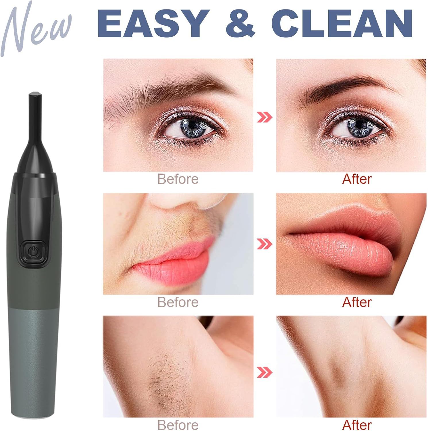 No Pains or PullingThe eyebrow trimmer precision tip helps remove unwanted hairs on the top and bottom of brows and in between eyebrows instantly and painlessly, no worry to get pains