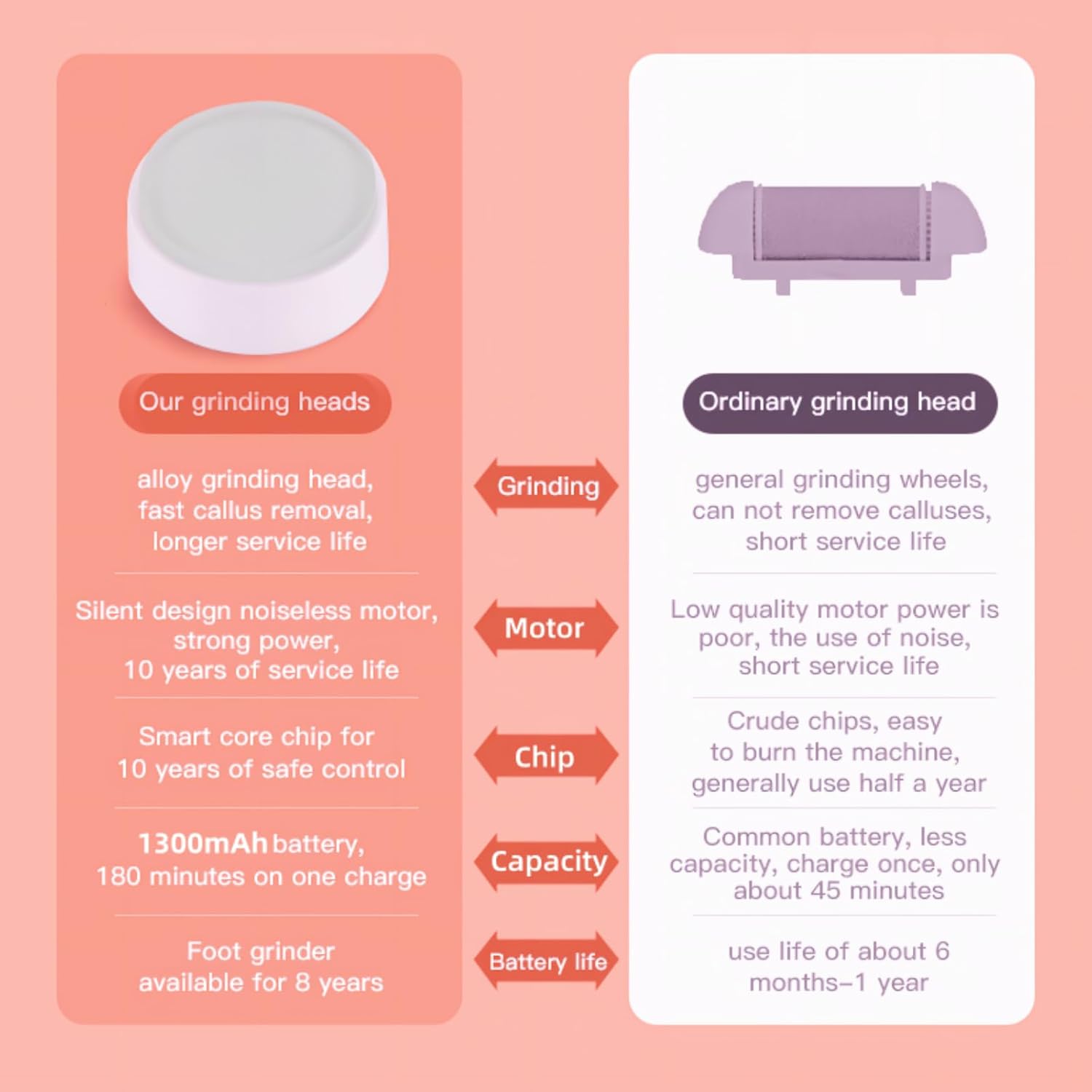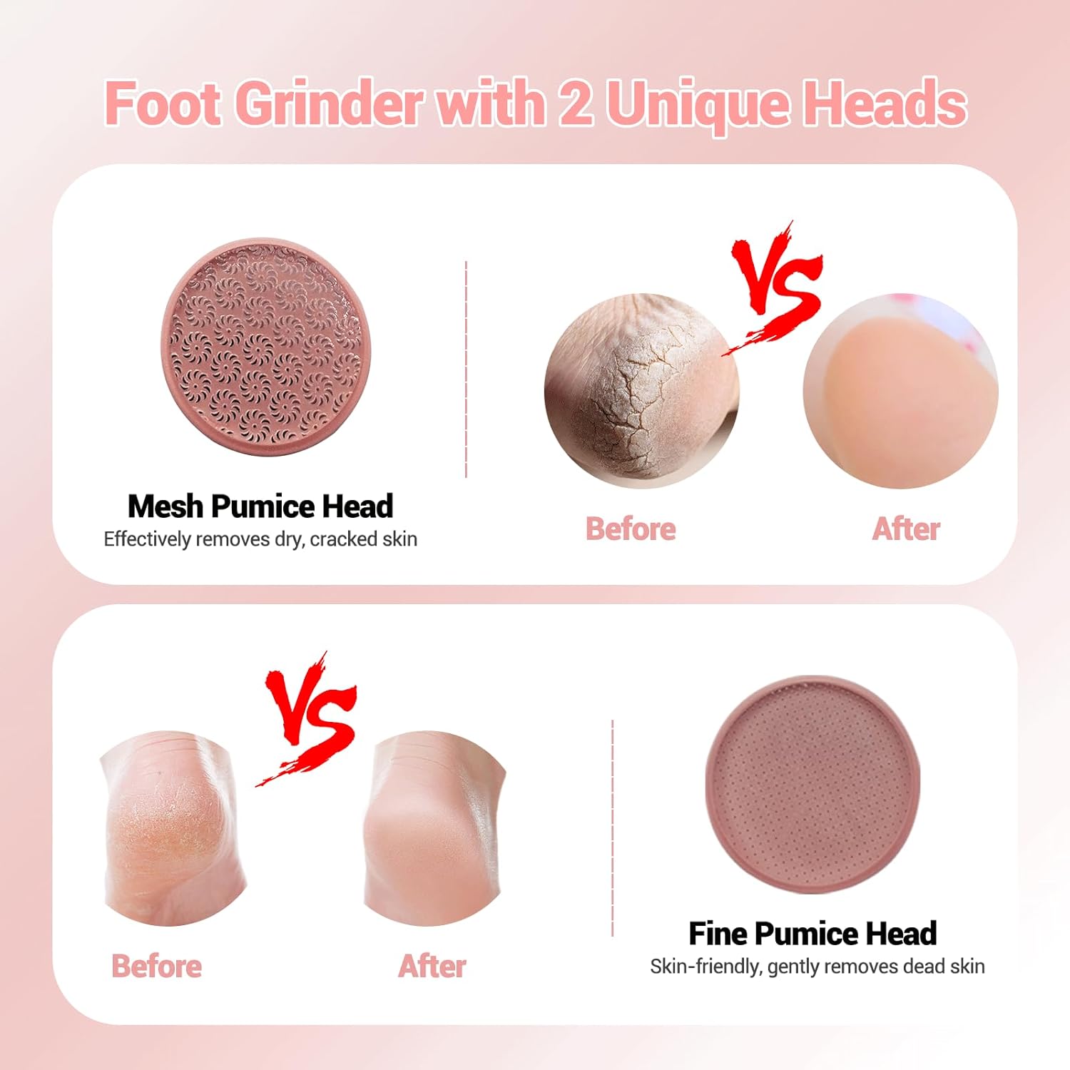 2 Nano glass grinding head – Compared to the complex and cumbersome accessories of other products, our product only requires two grinding heads to easily solve your skin problems. A spiral shaped grinding head and a dot matrix shaped grinding head are simple and easy to use.
