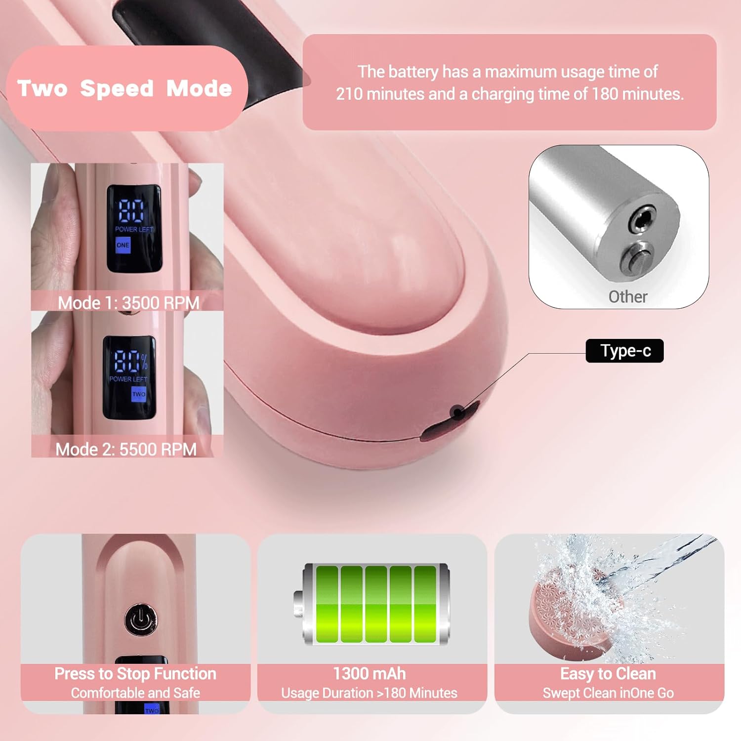 2 Speed modes with High speed high-quality motor – Our motor can reach up to 5500rpm (5500r/min) and a minimum of 3500rpm (3500r/min). The ultimate speed brings better use. 1st gear 3500 RPM and 2nd gear 5500 RPM.