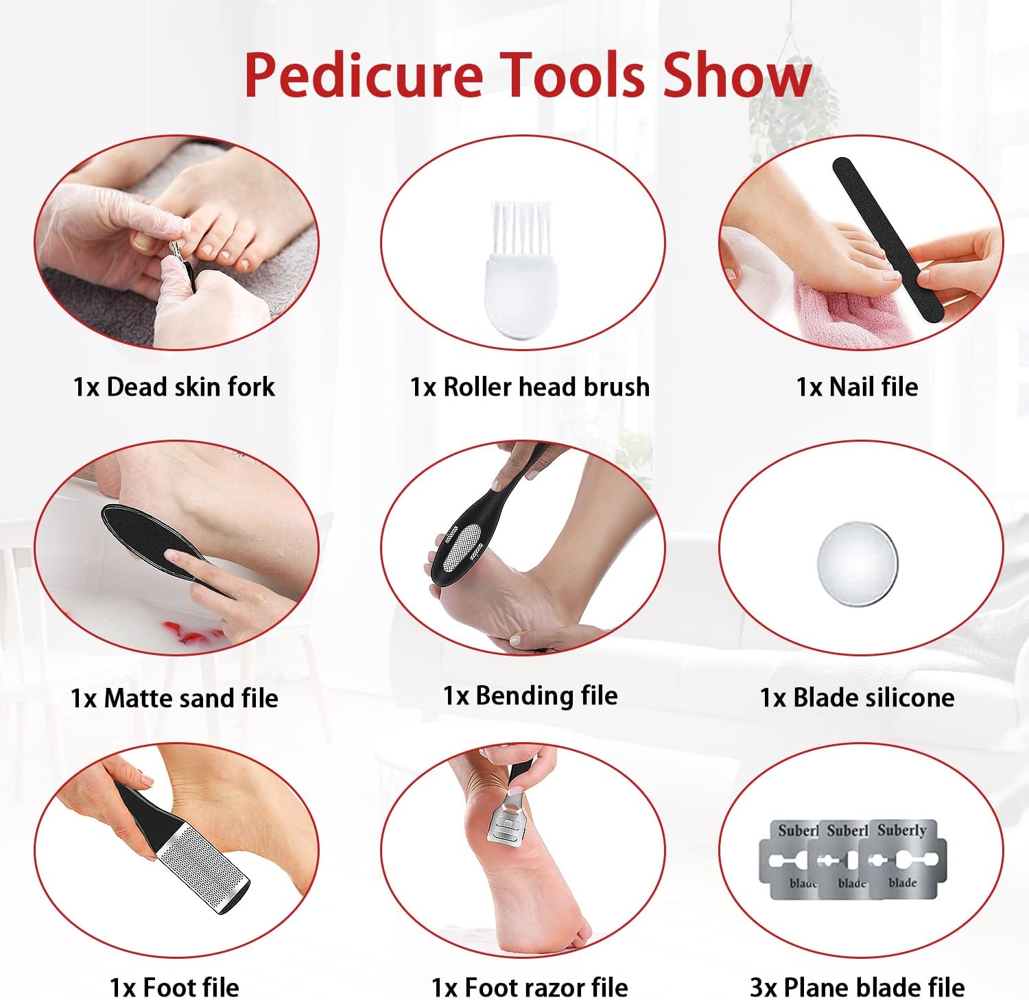 🦶【4 Pedicure Rollers】:Pedicure tools kit comes with 4 removable roller heads, which ascertains that it will be effortless to swap the old with the new. You may interchange the pedicure rollers depending on the roughness required to remove the calluses on the feet.
