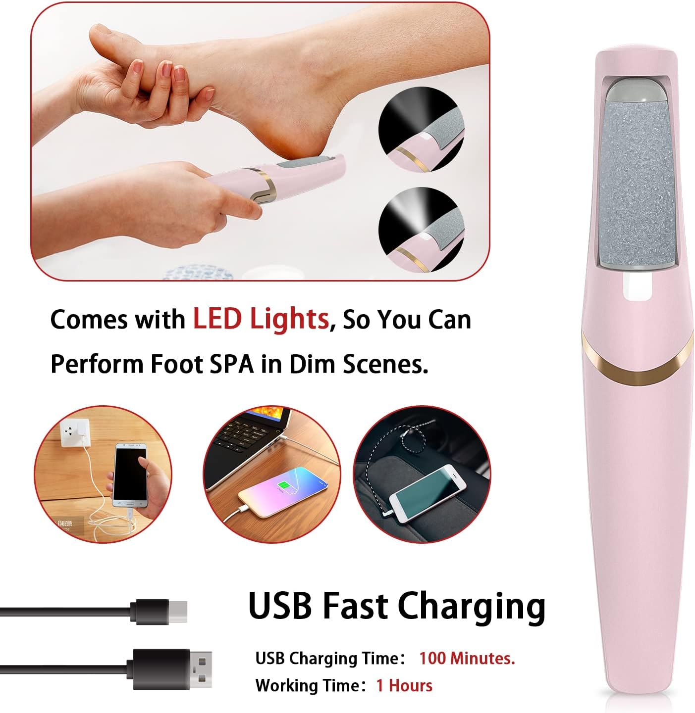 💡【Rechargeable Pedicure tools & LED Lighting】:Pedicure tools with a USB charging cable, you will not need to worry about running out of batteries as this unit comes. You may utilize the product after 1 hours of charging at a minimum. Pedicure tools is equipped with an LED lighting so that you will see yours foot on day or night.
