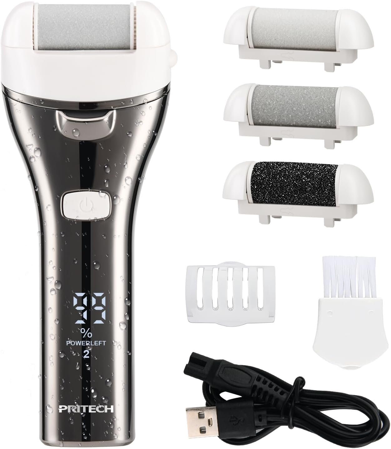 【9 Adjustable Speeds】Equipped with 9 customizable speed (400-860rpm) settings, garimus electric foot file caters to a wide range of comfort and care needs. The lower speeds gently ease beginners into foot care, while the higher settings provide the power of a professional-level treatment. Each speed is calibrated for different calluses and nail care, ensuring a precise and effective pedicure every time.The LED display shows the battery level and speed settings to ensure that you are always in control.