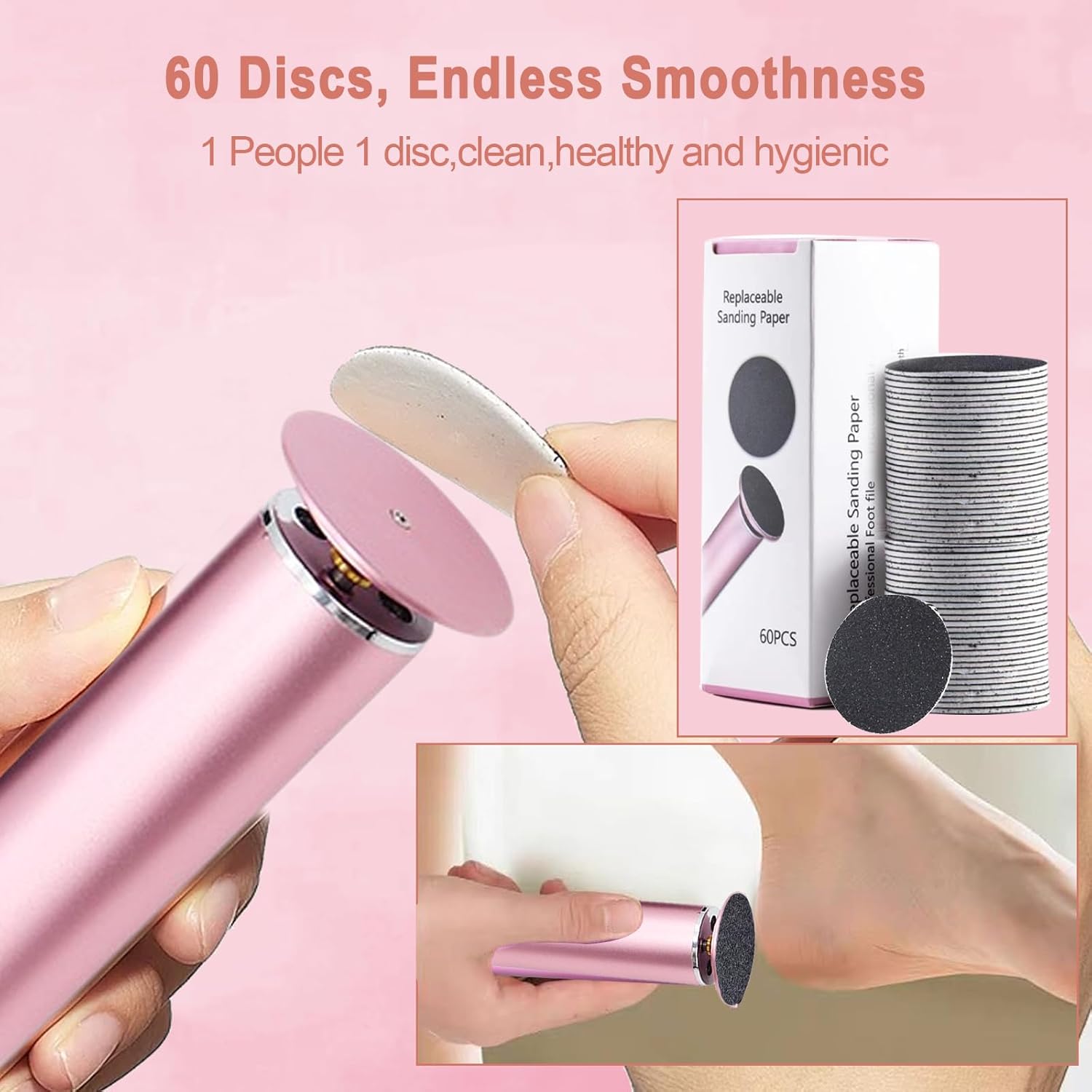 [60 Replaceable Sandpapers]: Ideal electric callus remover for family use, one per person, easy peel-and-stick.Replace discs easily for a fresh start on every use.
