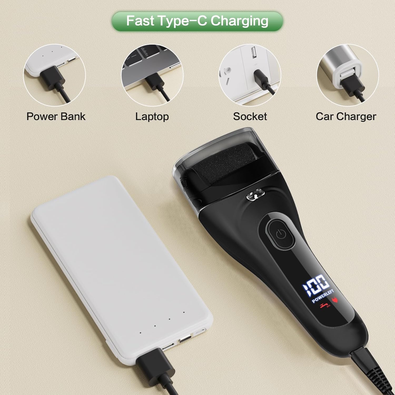 Electric Foot File Pedicure Feet Hard Skin Remover Foot Scraper Dry Dead Skin Remover Callus Exfoliator Rechargeable Feet Scrubber with 5 Replacement Rollers Foot Care Skin Removers