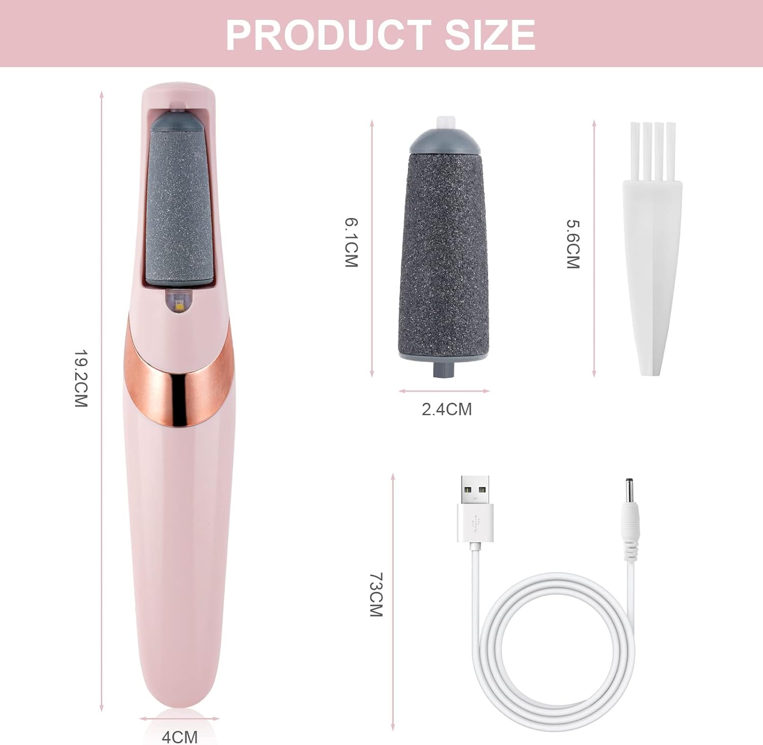 【Pedicure Set】Comes with 1 Electric Foot Callus Remover, 2 Different Replacement Roller Heads, USB Charging Cable and 1 Cleaning Brush to help you create beautiful, elegant and sexy feet.