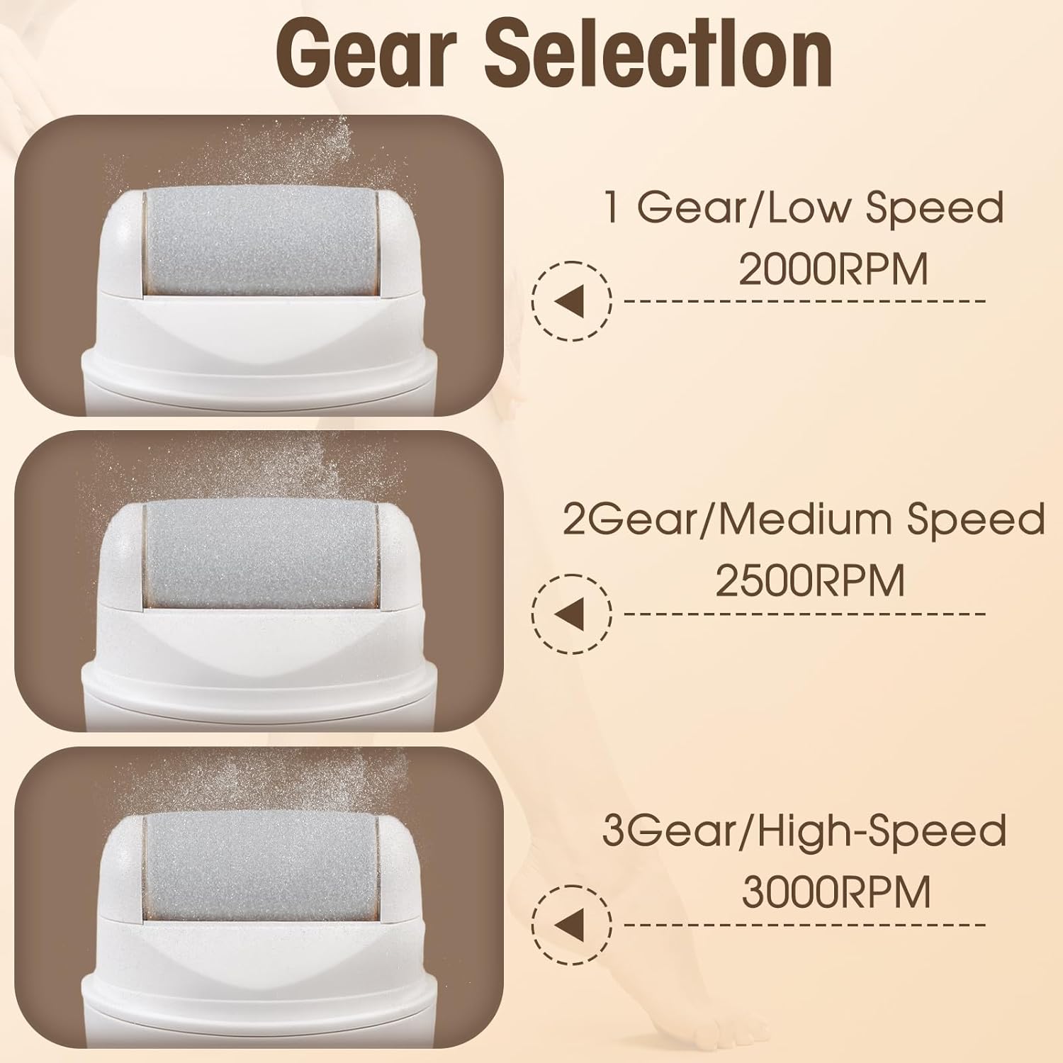 【Upgraded 3 Wider Roller Heads 】Different Roller Heads are suitable for the callus of hands, cocked dead skin and more delicate skin care. Fine Roller Head is suitable for the callus of hands, cocked dead skin and more delicate skin care. Regular Roller Head is suitable for the newly formed callus and normal skin care. And Rougher Roller Head is suitable for stubborn thick callus and the dead skin. Wider roller heads help you remove cracked dry dead skin more effectively.