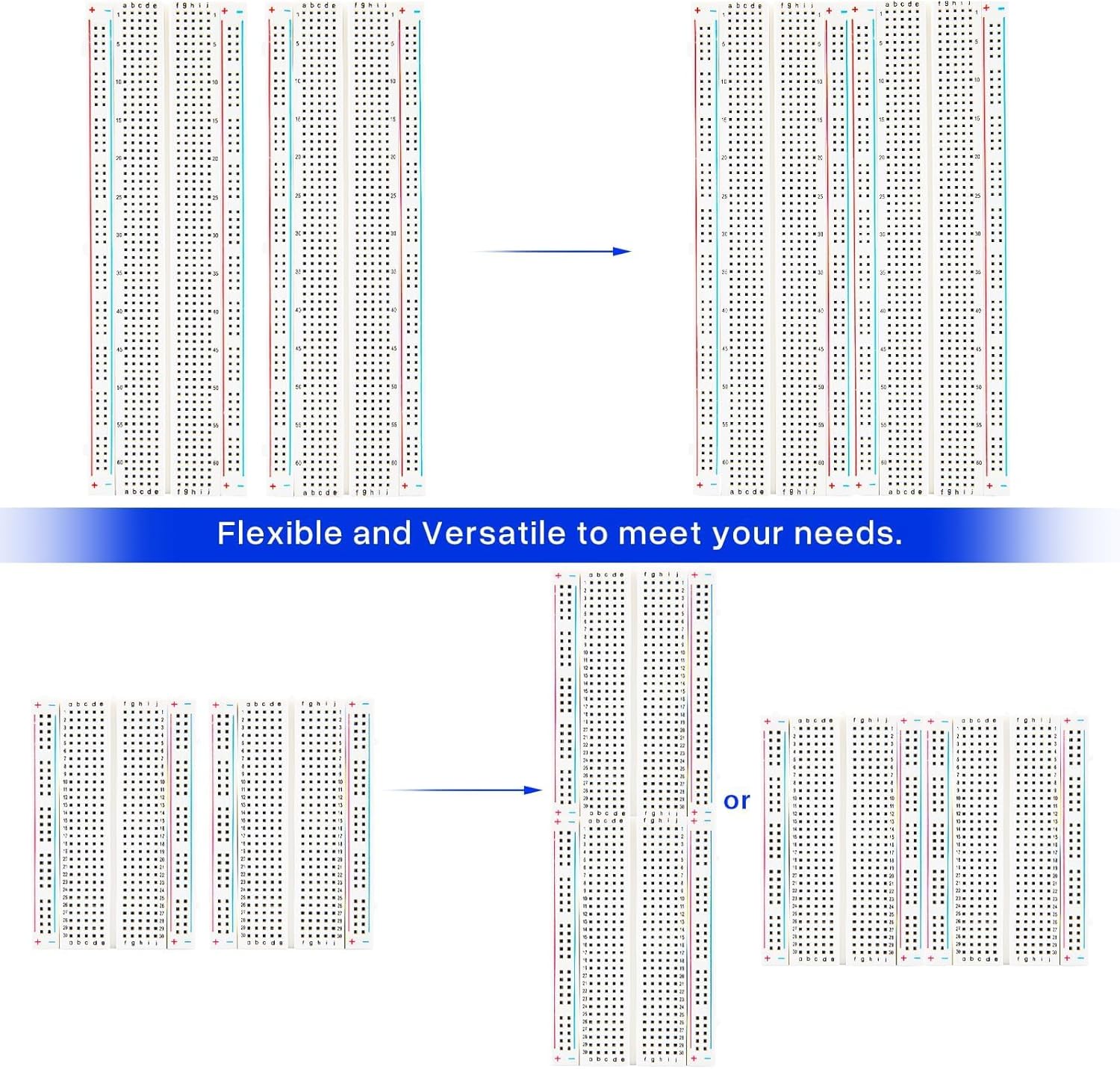 400 point and 830 point breadboard for versatile prototypes and circuit experiments and other DIY projects.