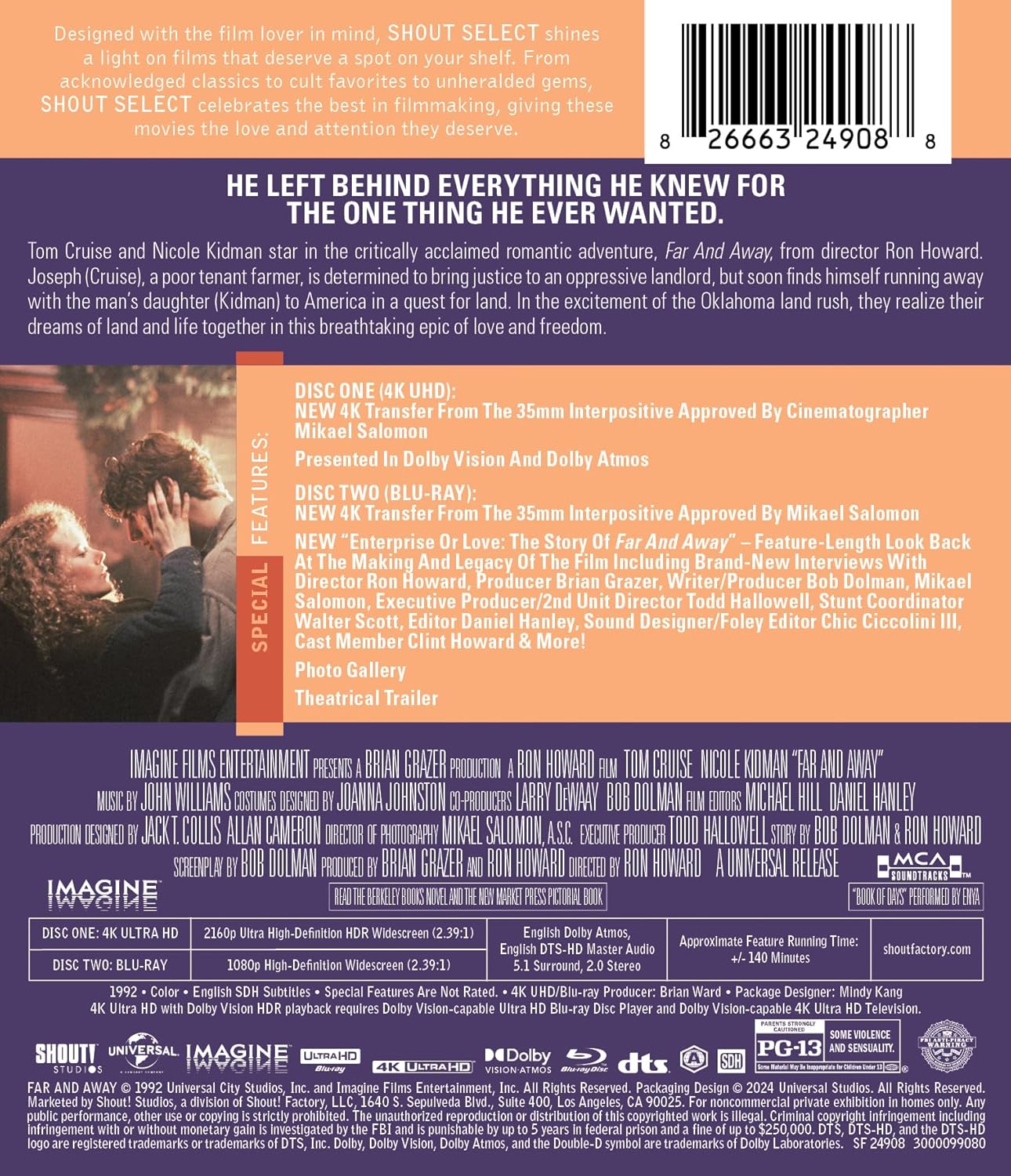 • Enterprise or Love: The Story of Far and Away – A Feature-Length Look Back at the Making and Legacy of the Film Including Brand-New Interviews with Director Ron Howard, Producer Brian Grazer, Writer Bob Dolman, Cinematographer Mikael Salomon, Executive Pr