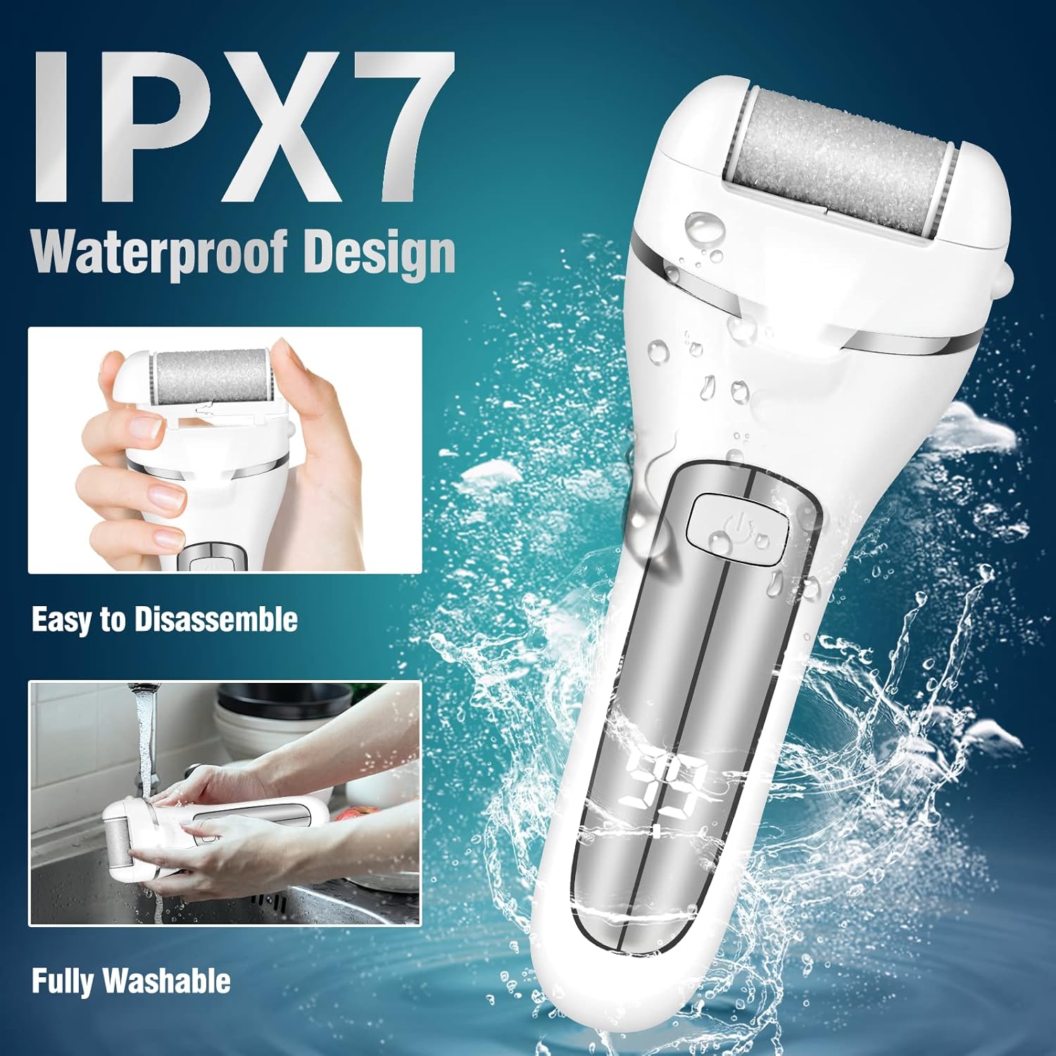 Electric Callus Remover with an IPX7 Waterproof function, which makes it safe to use in the shower or bath. The powerful rotating head and adjustable speed settings make it easy to use and customize the device to fit your needs. It also comes with a cleaning brush, so you can quickly and easily clean the device