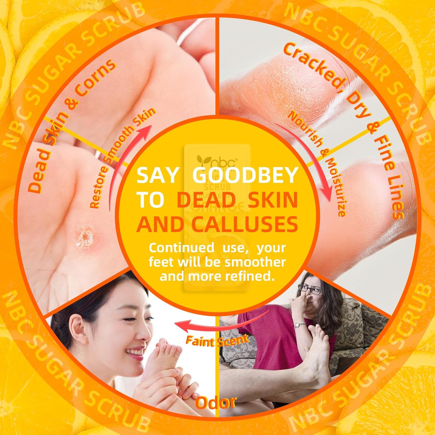 ✅【Dead Skin Remover for Feet】 Our foot Sugar Scrub is moisturizing and rich in antioxidants to soften and nourish dry skin. It can slow down skin aging while removing unwanted toxins and dead skin cells. Wave goodbye to dry, cracked feet after just one use.