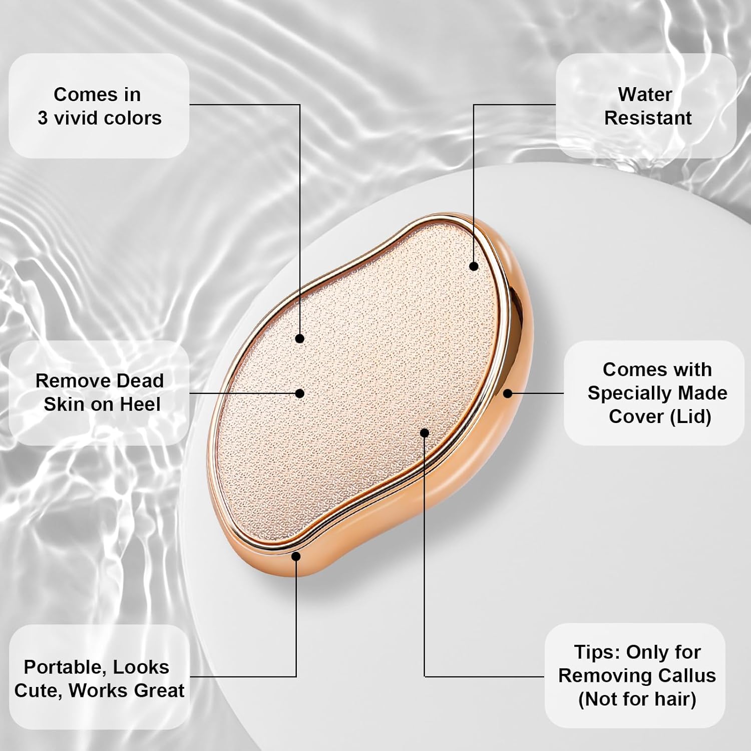 Easy to clean and it’s CUTE: If you need to put it away, all you need to do is rinse it with water, air dry and put the lid on; Also, we come in three bright, electroplated colors (Gold, Pink, Red, scroll down to see the color options) and no one will discover it’s a glass foot file when placed in your bag or at home, lol