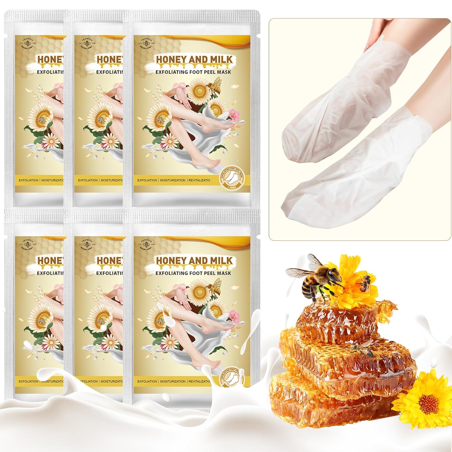 【Effective Exfoliation and Renewal】 Using our foot exfoliation mask at home,experience foot care and foot spa.Packed with gentle fruit acids and botanical extracts, add milk and honey,it effectively removes dead skin cells, revealing softer heels and toes.