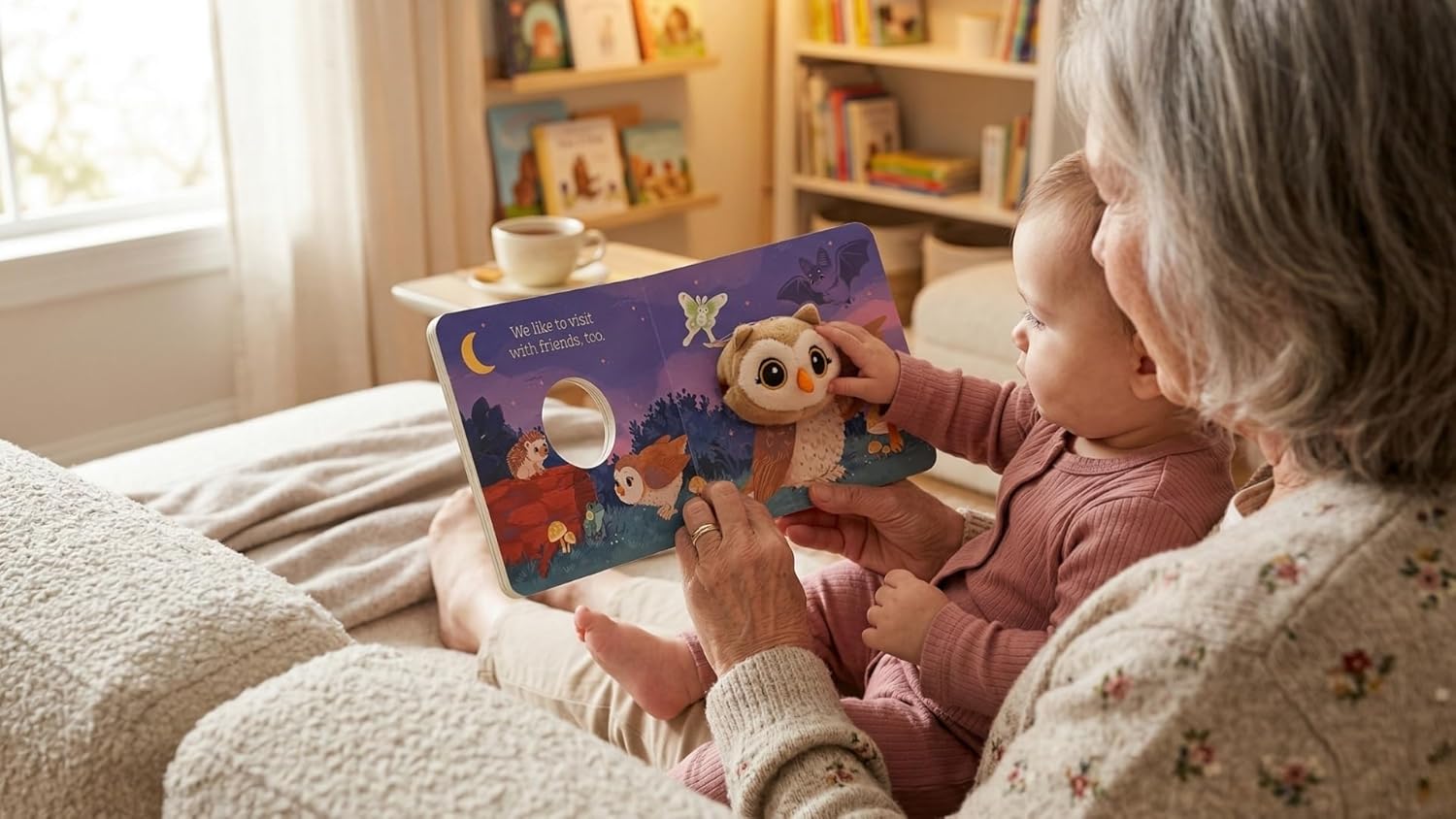 The adorable built-in owl finger puppet encourages interactive play and helps develop fine motor skills and hand-eye coordinationSweet rhyming story entertains while teaching language patterns to babies and toddlers in their first yearsPractice hand-eye coordination. Beautiful illustrations with bright coloring help keep toddlers engagedBabies and toddlers learn best when they are playing, especially when their grown-ups are in on the funA great finger puppet book for birthdays, Christmas, baby showers, Mother’s Day gifts for grandma, Grandparents Day, and more!