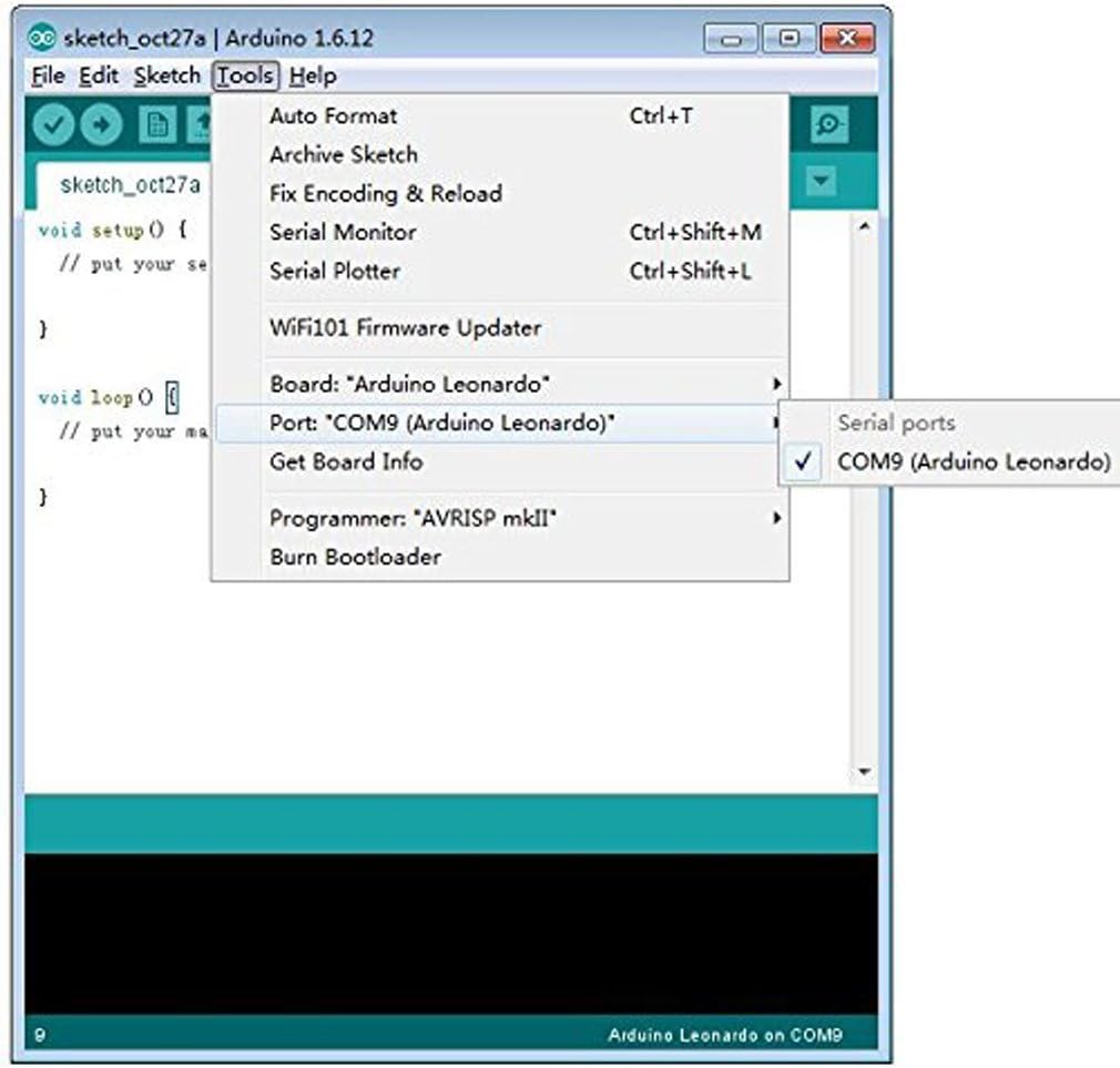 Note: 1.When you open the Arduino IDE software, pls go to the tool and choose the board “Arduino Leonardo”