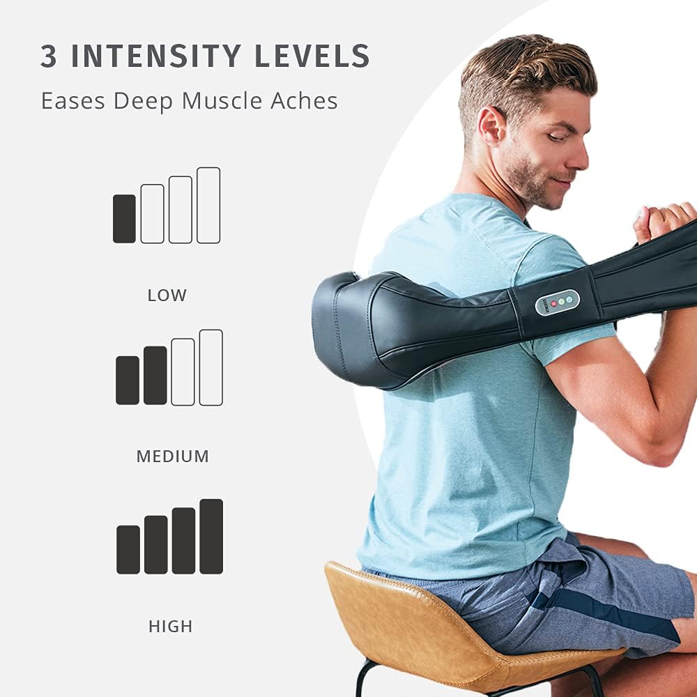 Customized Comfort: Optimize your massage with 3 intensity levels and optional heat for added comfort and relaxation