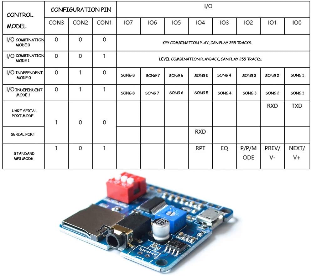 Standard MP3 and other 7 operating modes setting by DIP switch.