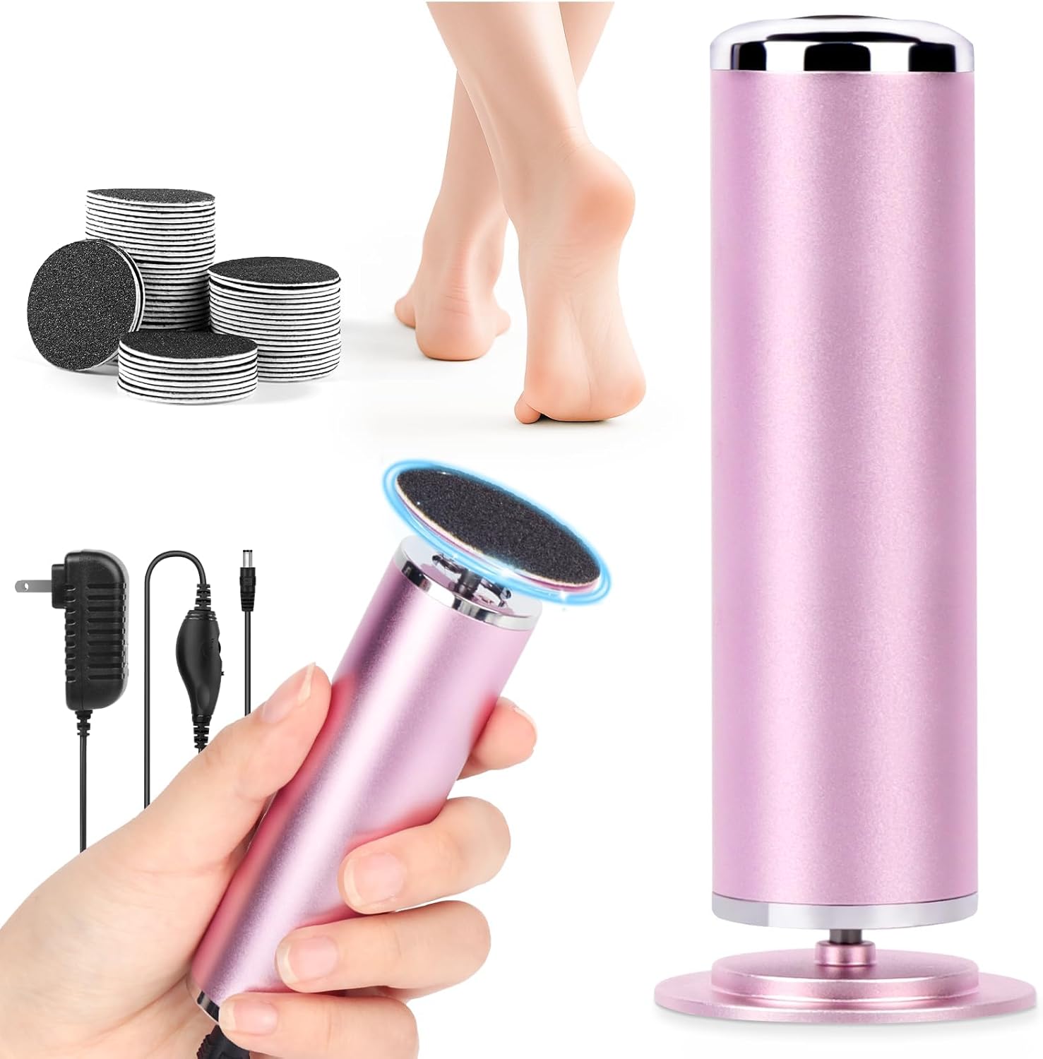 【Electric Foot File Remover Callus】360-Degree Rotation Professional-grade electric foot care tool with Adjustable speed and sanding rotation direction of dead skin and calluses.suitable for women aged 30-55 in professional roles (teachers, salespeople, office workers), and those with foot issues, this product meets the need for effective foot care in scenarios like seasonal transitions, pre-event preparations, and discomfort from thick calluses or cracked heels.
