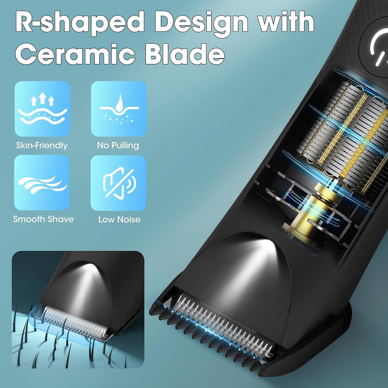Smooth and Safe Trimming Experience: This manscape body trimmer features a 7200 RPM high-performance motor with ceramic blade, providing precise and safe grooming from rough cuts to close shaves;