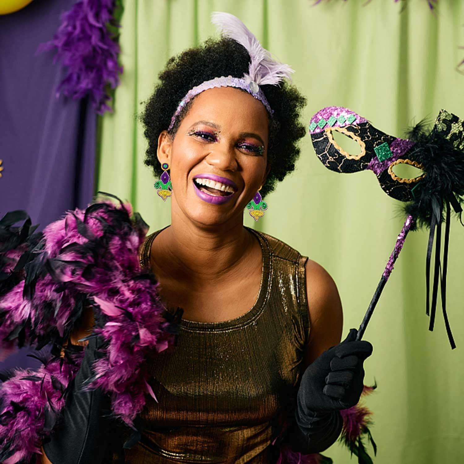 ☛Application: Ideal for Mardi Gras festivals, Mardi Gras parades, Carnival, Fancy Dress Party, Birthday Parties, Halloween Parties, Masquerade and night club dress-up events. ☛Package Includes:1 Pair of Mardi Gras Earring.