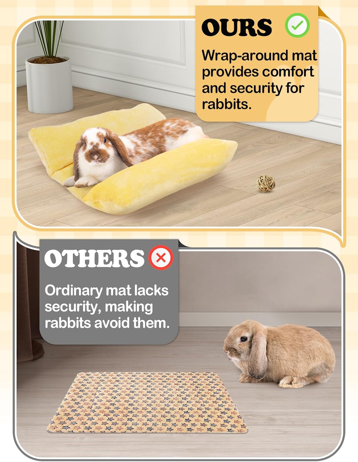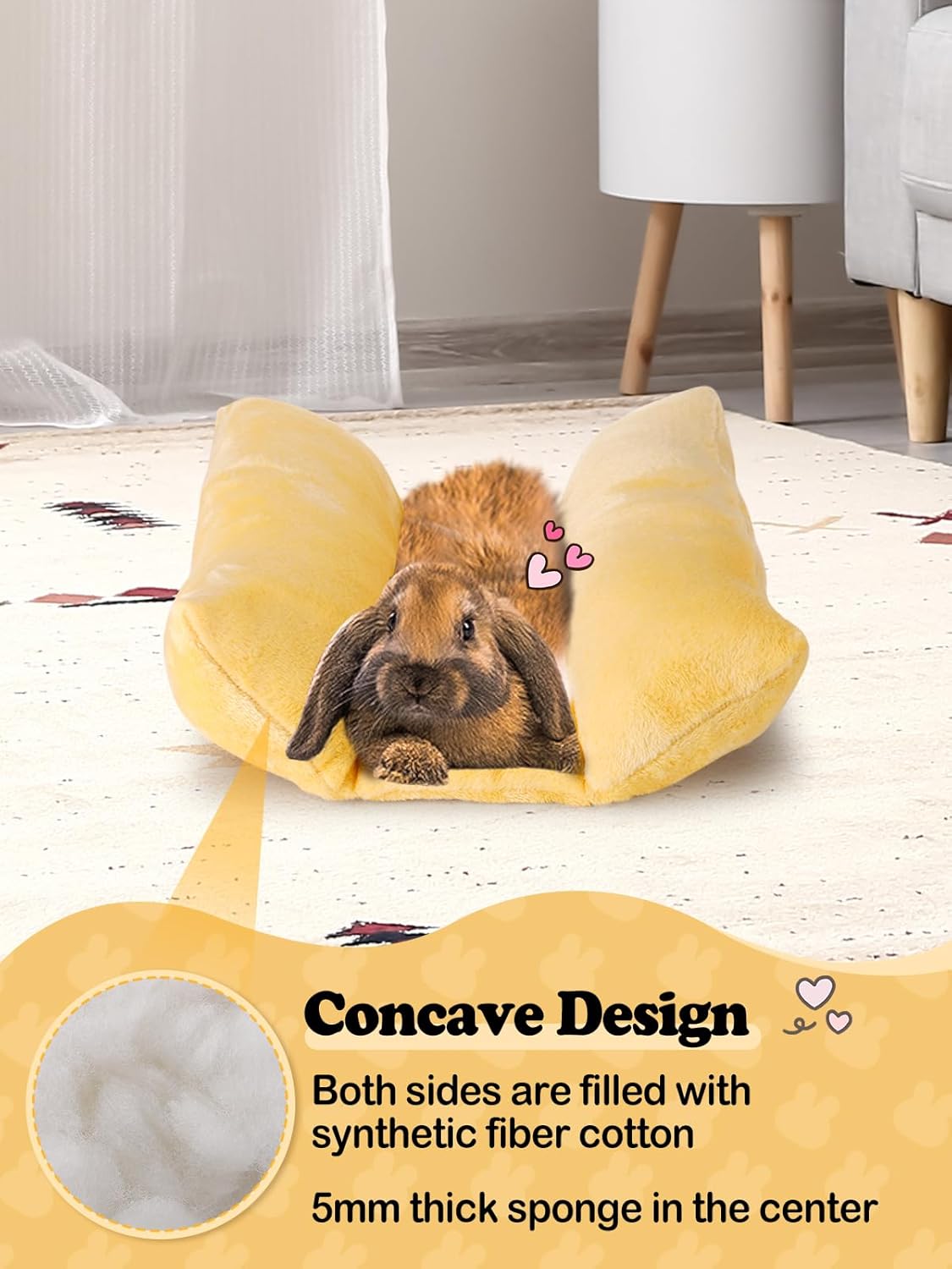 Chic Design: The sides of this rabbit bed are filled with high-quality cotton, forming a plush, pillow-like area for your rabbit to rest. The 5mm thick sponge in the center offers a snug, warm embrace, giving your rabbit a cozy, wrapped-in-comfort feeling.