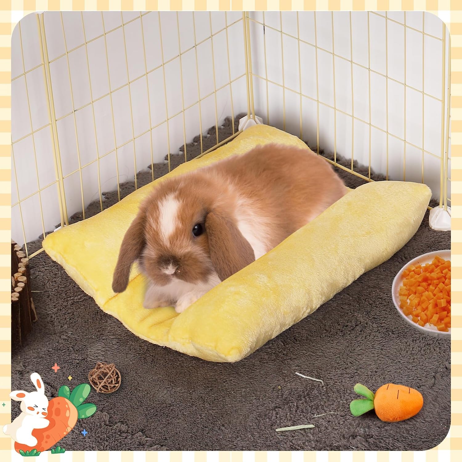 Versatile Use: This pillow bed lounger is not just for bunnies—it’s ideal for guinea pigs, hamsters, chinchillas, and other small pets. You can place it in a cage, on the floor, sofa, or any indoor space to create a cozy resting spot for your pet.