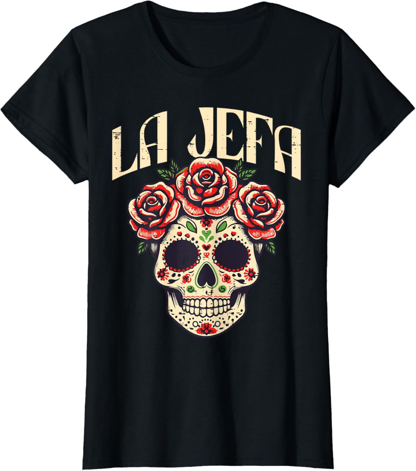 Grab this Mexican La Jefa Sugar Skull T-Shirt for Mexican Independence Day, Hispanic Heritage Month or Cindo De Mayo gift for men, women, boys, girls, kids & youth! Wear this vintage Mexico flag outfit on September 16 & Viva Mexico!