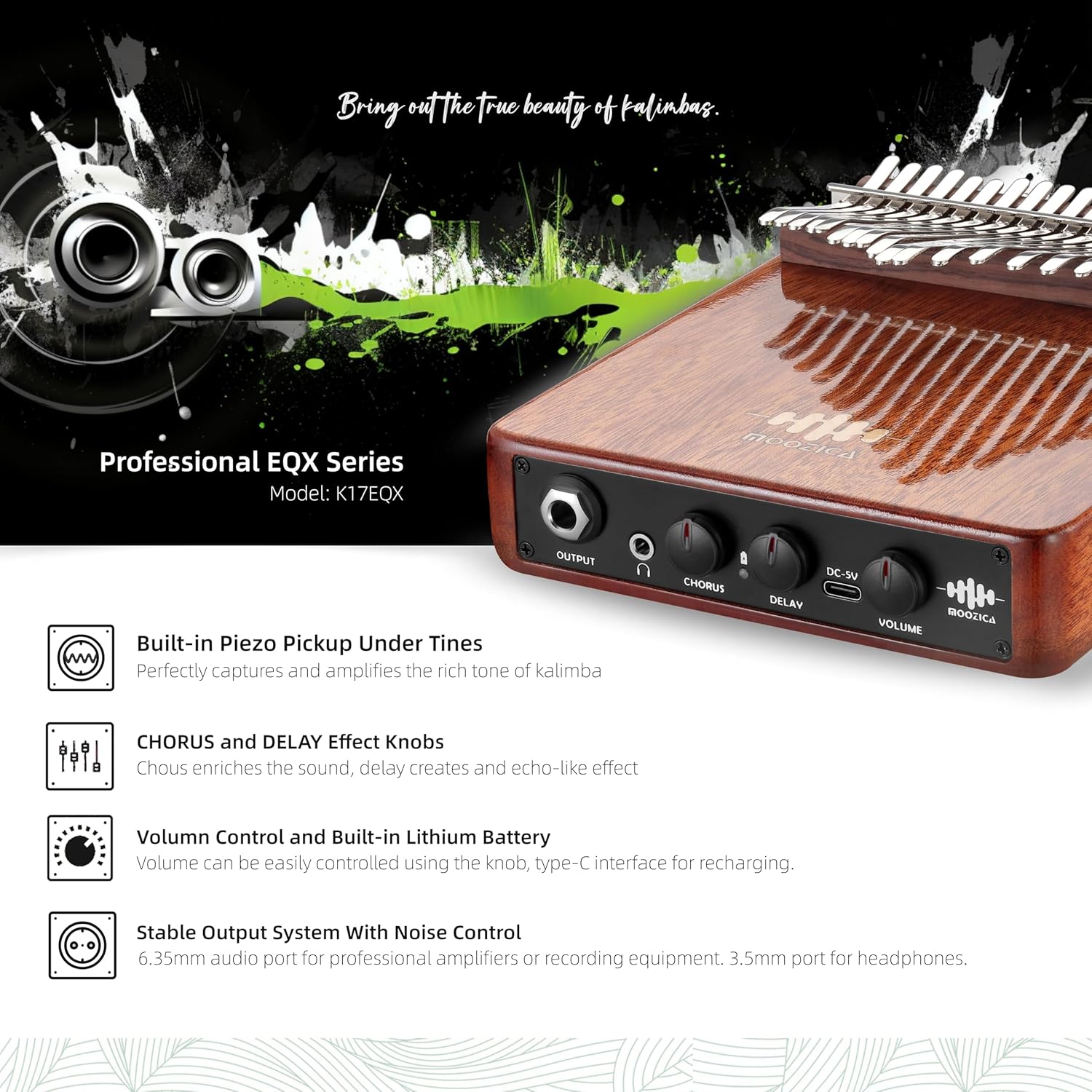 【The Professional EQX Series】Featuring a built-in Piezo pickup and a professional pickup structure design, the EQX series perfectly captures and amplifies the rich tones of the kalimba. With the EQX pickup module, MOOZICA brings out the true beauty of kalimba.