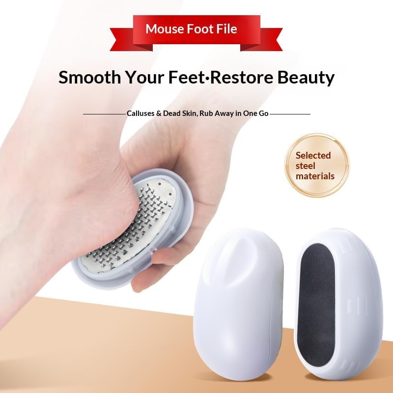Innovative Mouse Design & 3-in-1 Function. Features a mouse-shaped ergonomic design for comfortable grip. Comes with fine sanding surface, stainless steel grinding surface, and dead skin storage cover to meet all your foot care needs
