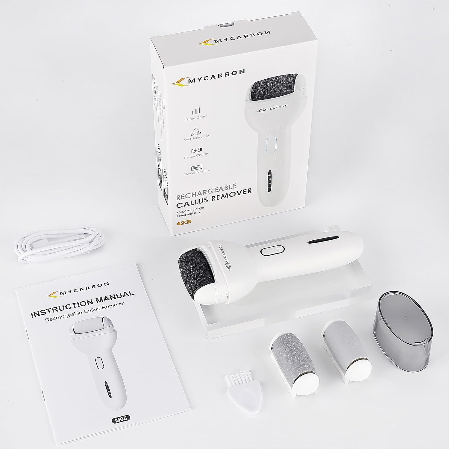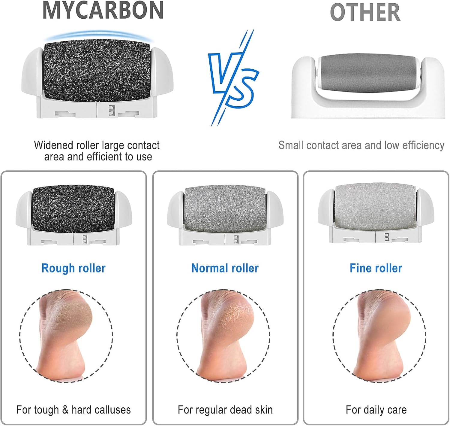 POWERFUL Electric Feet Callus Removers—We have improved the rotating speed and capacity of this foot file: Most other devices’ highest speed is only 2000r/min, but ours is 2400r/min, which can more effectively remove calluses; The battery capacity has been upgraded to 2000mAh, after fully charged for 2 hours, , it can powerfully run continuously up to 300 minutes.