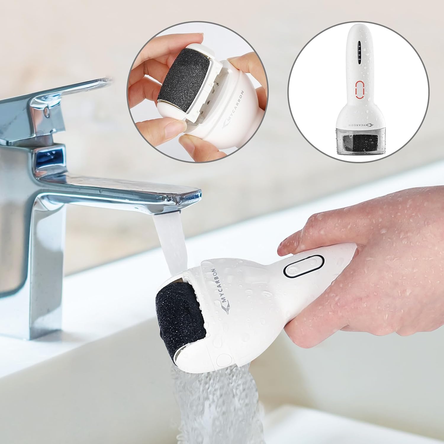 Easy to Clean Electric Callus Remover Kit— The pedicure kit can be rinsed directly under the tap after use, the transparent cover protects the roller from pollution and also allows the machine to stand on the table for dripping, very clean and hygienic.