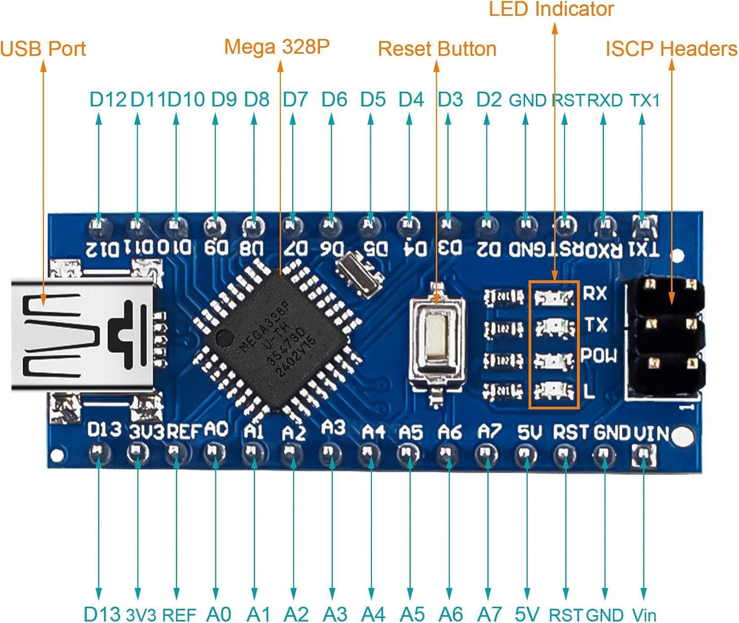 Hosyond Nano’s got the breadboard-ability of the Boarduino and the Mini+USB with smaller footprint than either, so users have more breadboard space.