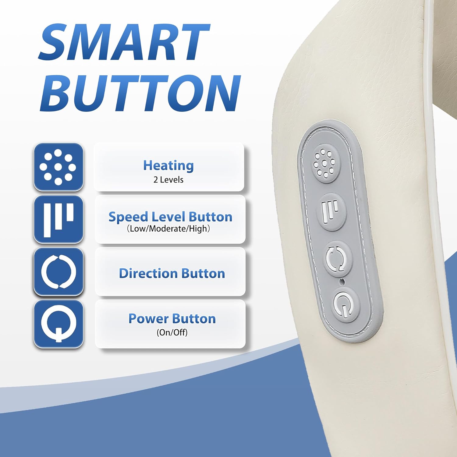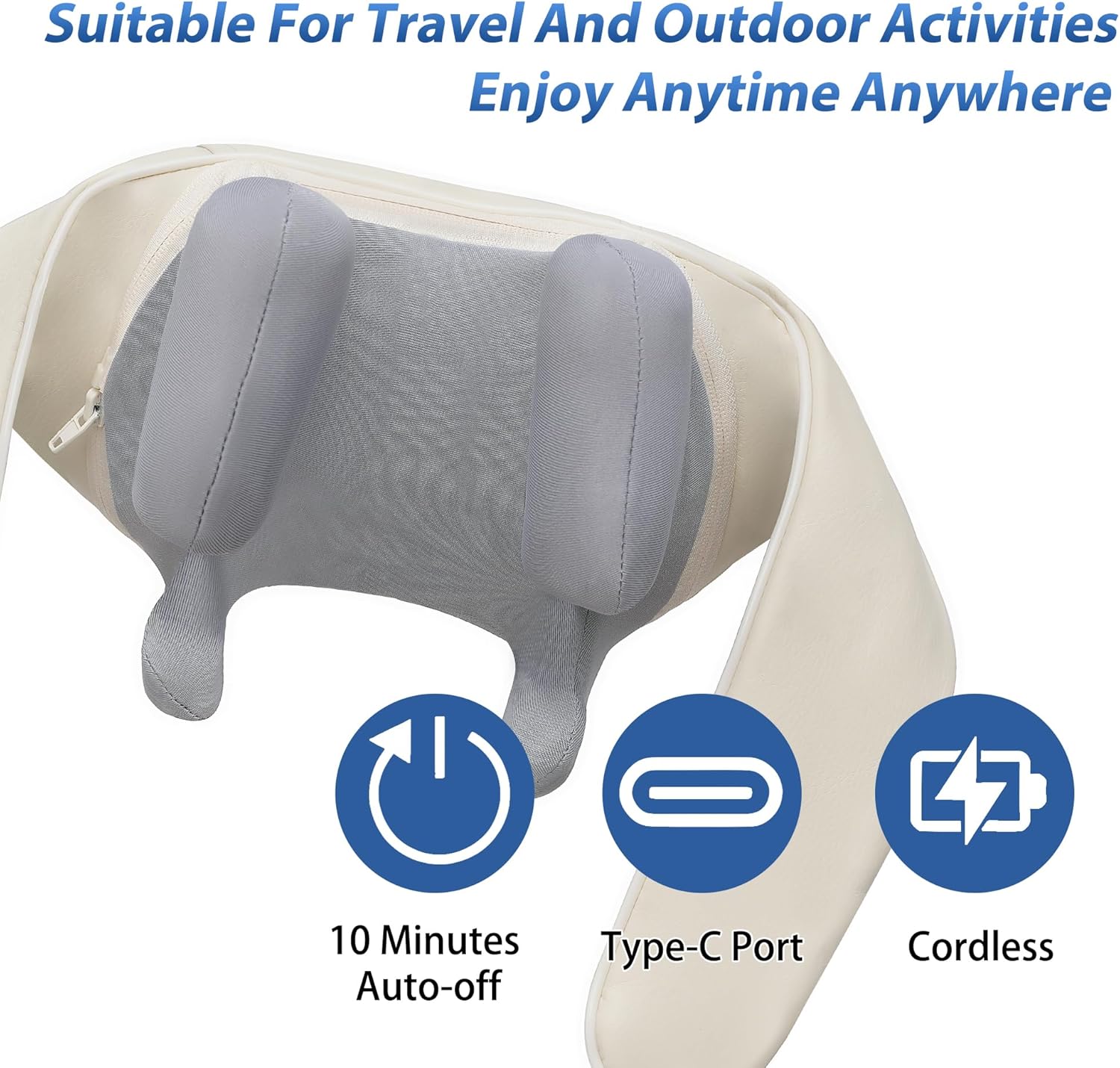Massager With Heat And 3 Intensity Levels: The neck messager has 3 Intensity message levels, which allows you to experience different massage experiences. At the same time, it has a heating function, and a large area of ​​hot compress can better relax tense muscles. The massager automatically shuts off after 10 minutes, effectively preventing muscle damage caused by excessive massage.