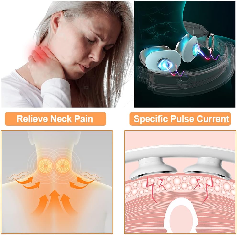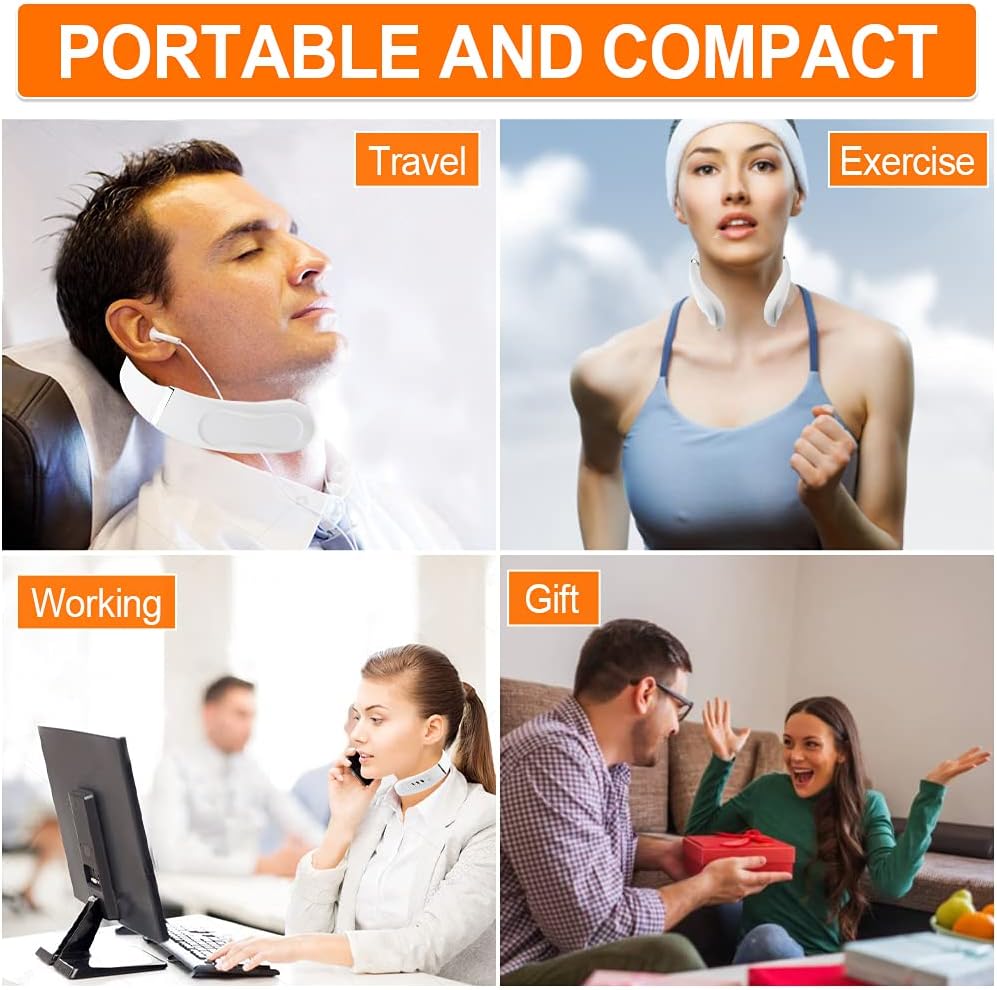 🎧【HELPFUL TIPS】1.Wet the neck before use, make sure the two conductive sheets of the massager are tightly attached to the skin of the neck appropriate location so that the user experience will be better. 2.Do not use it together with other medical electronic products,such as cardiac pacemaker, artificial heart lung and other medical devices, otherwise it may cause misoperation of medical devices, which may cause unnecessary injuries.
