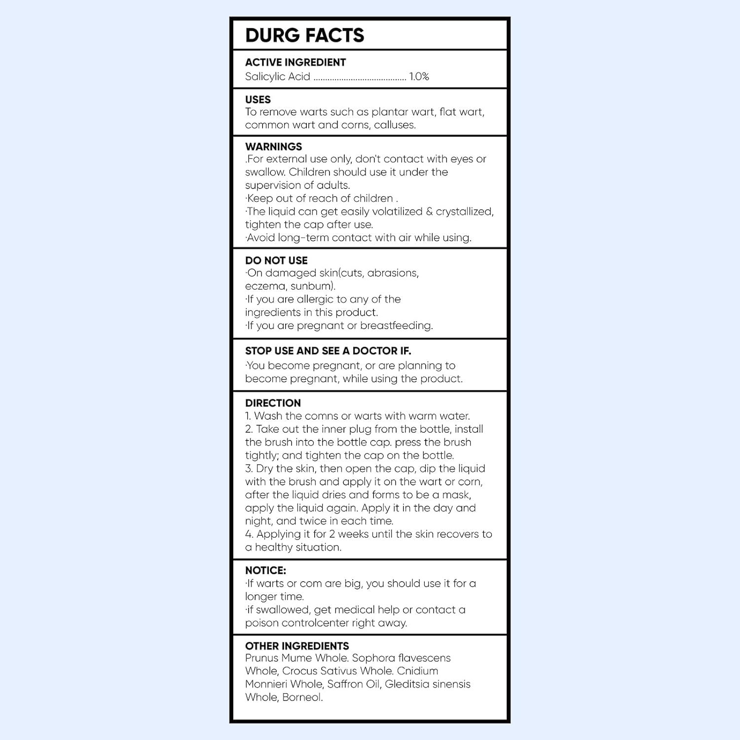 Our liquid wart & corn remover is gentle on the skin. Effective in removing warts and corns, such as common warts on the hands, plantar warts on the soles of the feet and corns on the toes, etc.