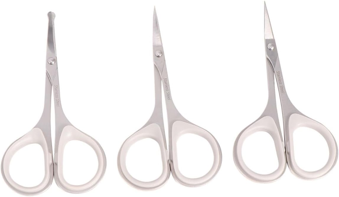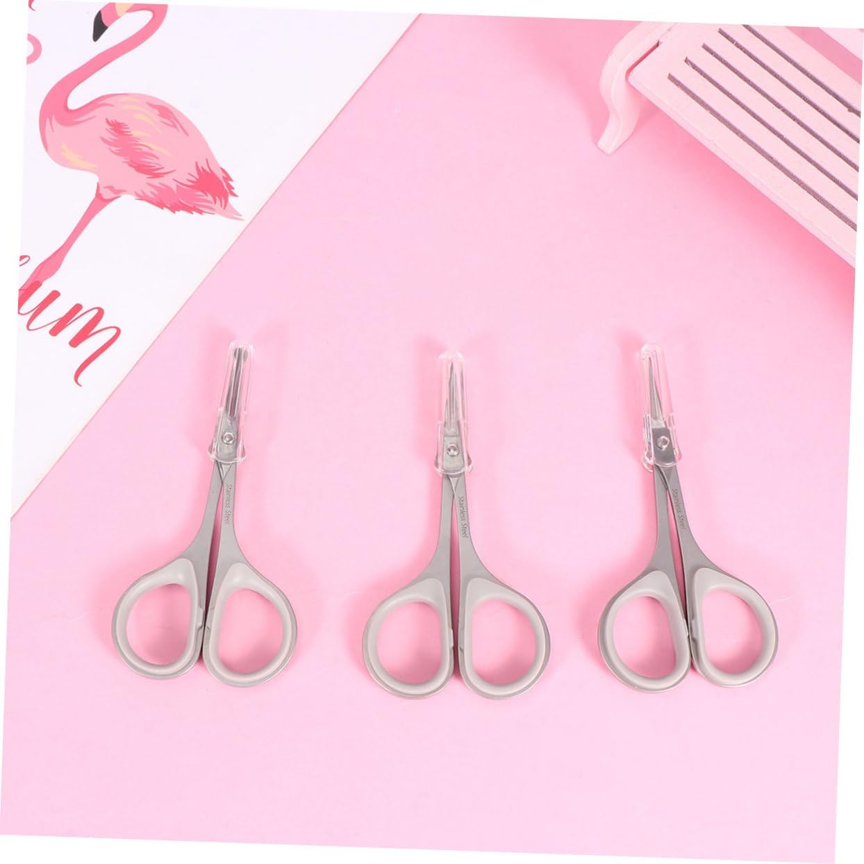 3sets Eyebrow Trimmer Round Scissor Safety Tip Scissors Ear Hair Trimmer -pointed Scissors Facial Hair T Scissors rved Round Nose Hair Trimmer Ear Hairs Shear Silver 3pcs*3