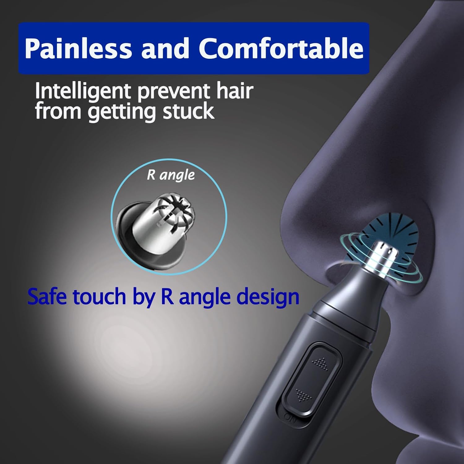 Powerful and Safe motor cuts nose hair instantly: This nose and ear trimmer for men is equipped with a high-speed motor that runs at 10,000 rpm, providing precise cutting. The R-shaped head ensures a safe distance from the nostrils, effectively protecting the nasal cavity while painlessly removing nose hair. The operating noise is less than 70db, and the nose hair clipper can be used freely.