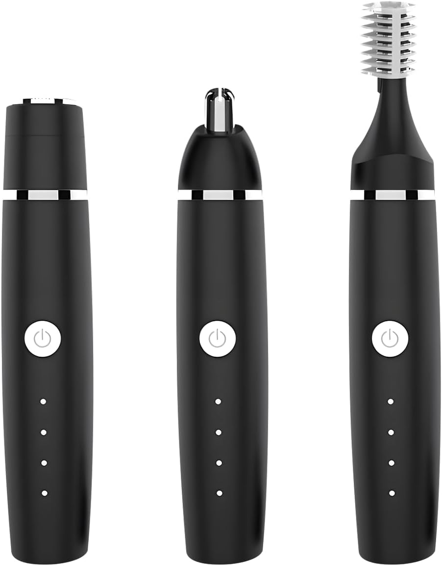 Three Professional Trimmer Heads: Simply twist to easily swap out the trimmer heads and switch functions. The nose hair trimmer can trim nose and ear hair, while the eyebrow trimmer includes a limit comb for cutting to 6mm and 3mm lengths. The shaver is suitable for trimming facial hair, beards, and leg hair.