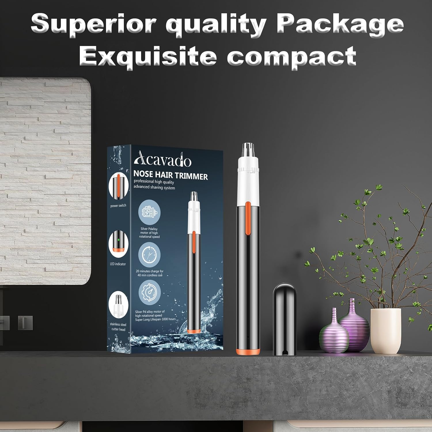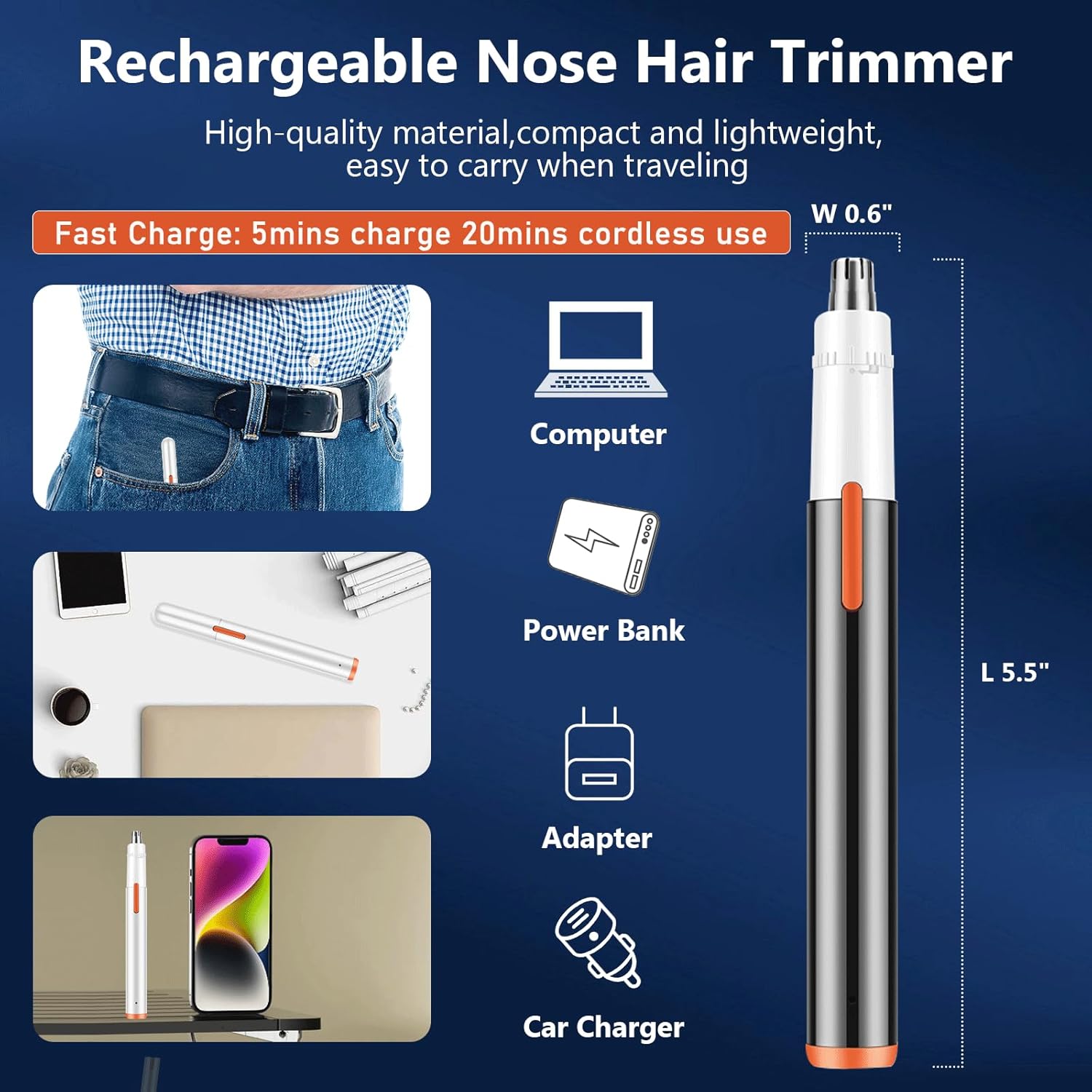【Compact & Portable】 The nose trimmer is made with durable ABS material and boasts an ultra-lightweight body, presenting a compact pen-like appearance. This makes it easy to carry and saves space. The compact design of nose hair trimmer means you can take this tool anywhere for on-the-go grooming.