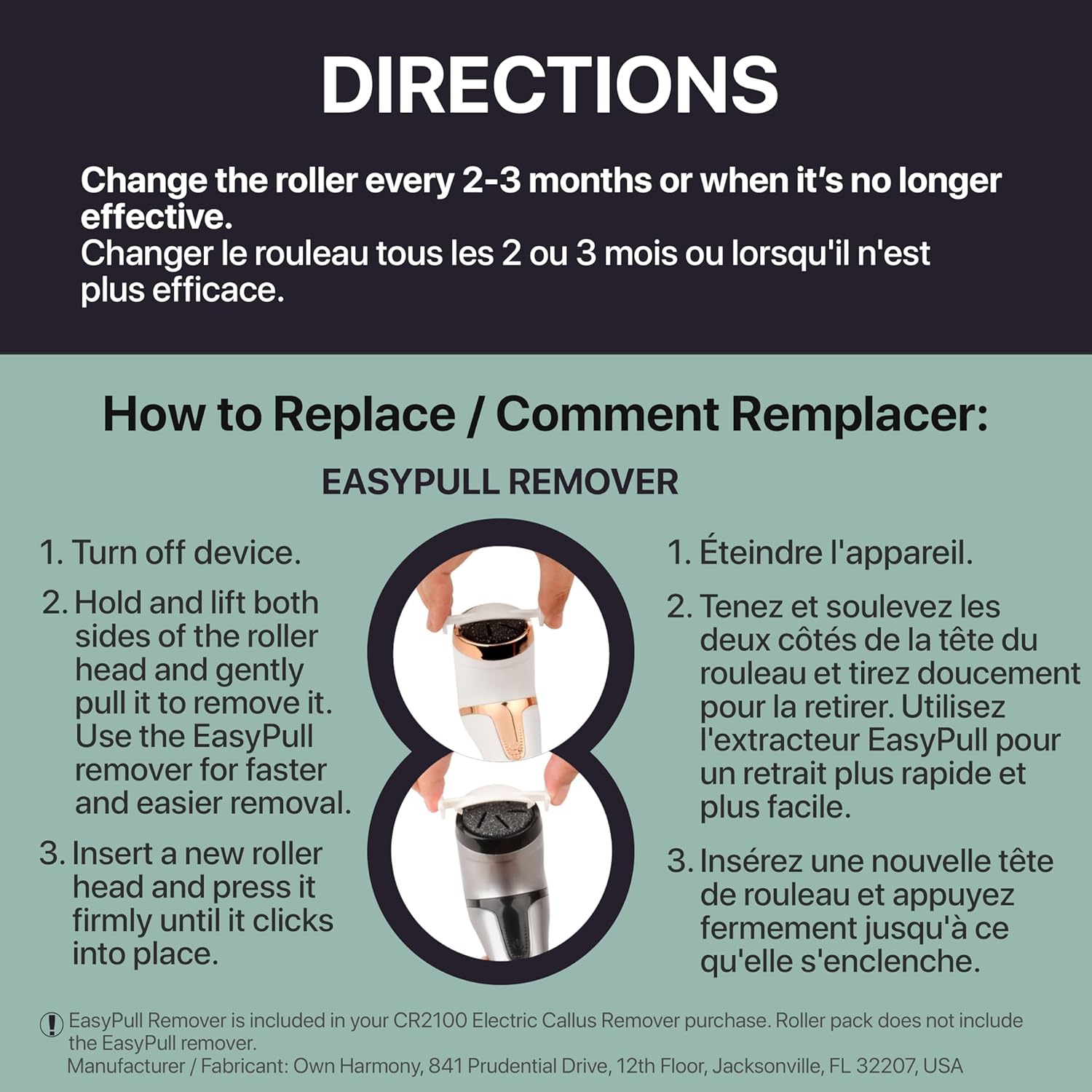 REFILLS 4 ROLLERS – Package includes 2 extra coarse replacement heads and 2 regular coarse; Fits only OwnHarmony CR2100 Electric Callus Remover and foot file