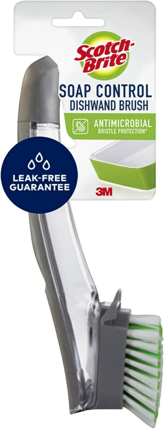 Scotch-Brite Advanced Soap Control Dish Brush Scrubber, 1 Antibacterial* Cleaning Brush, Prevents Soap from Leaking, Leak-Free Guarantee, Safe on Dishes, Nonstick Cookware, Tubs, Durable, Reusable